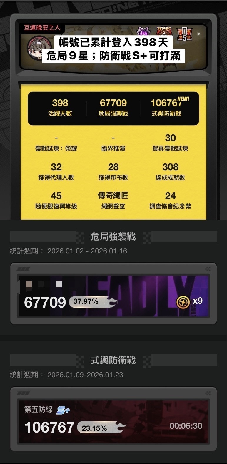 練度充足,每期式與防衛戰跟危局都能拿滿菲林獎勵。