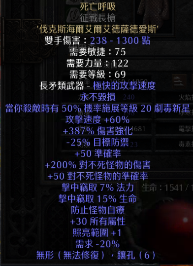 非天梯術士畢業武器死亡呼吸 征戰長槍 戰槍 死呼387ED
