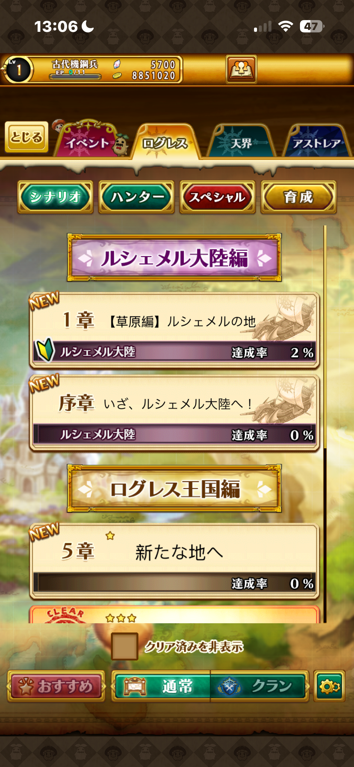 日服進度如圖所示(支線獵人世界樹發見斷崖之秘境也都還沒解)