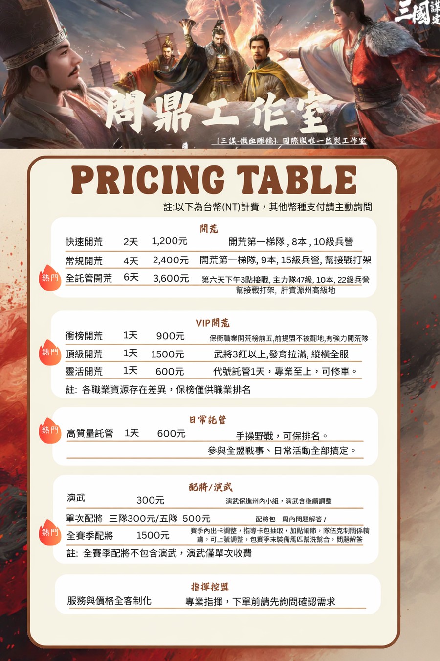註:全賽季配將不包含演武,演武僅單次收費