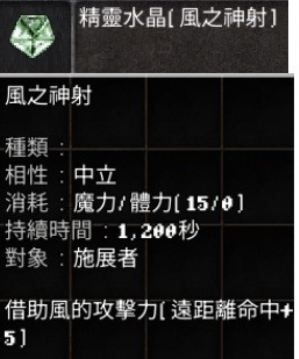 【精靈水晶 風之神射】 風妖神技 命中+5 可配尤米