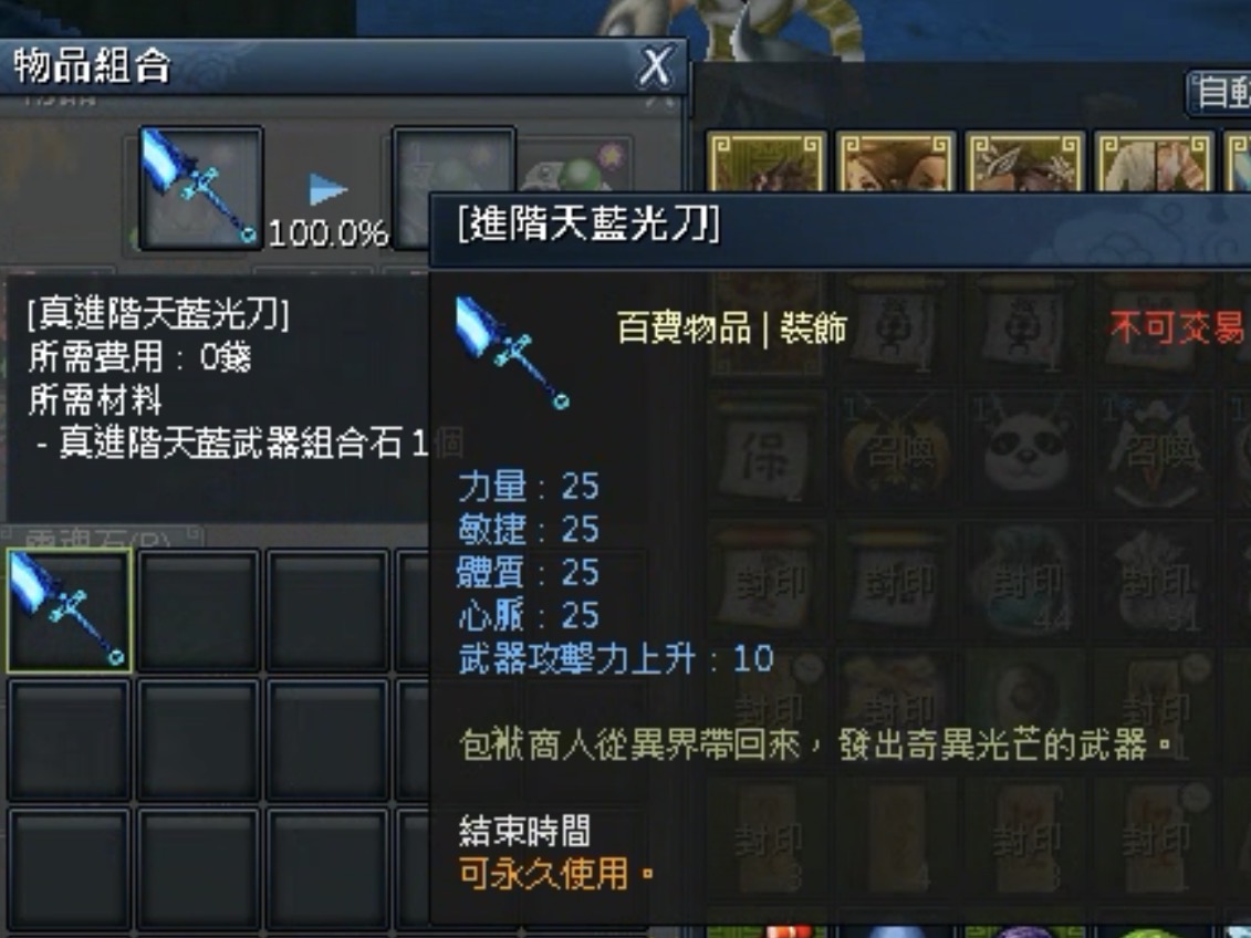 真進階天藍光刀(需自備真進階天藍武器組合石)