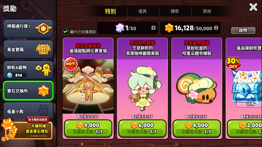 寶物:沙漏跟流星雨已滿等