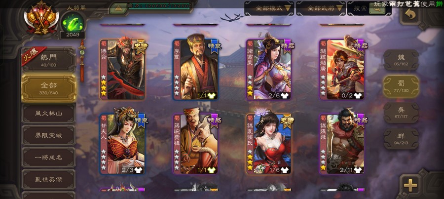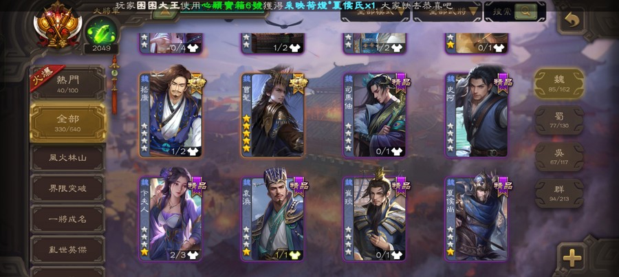 楊彪,曹髦,孫寒華,戲子,關索,界于禁,郝劭,神曹操,神司馬~~
