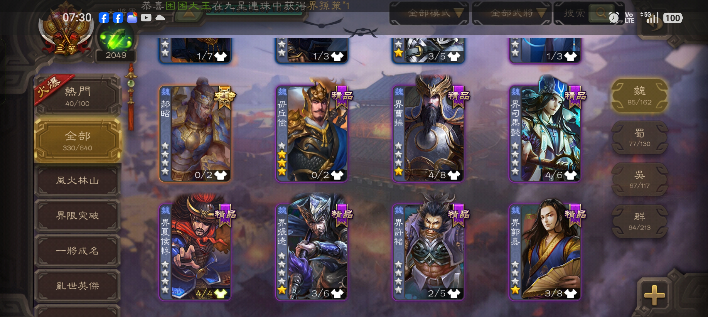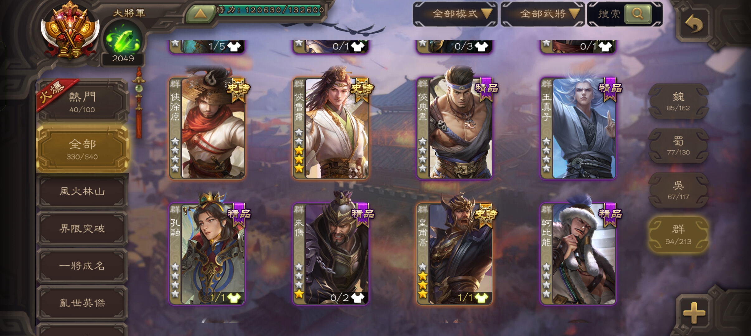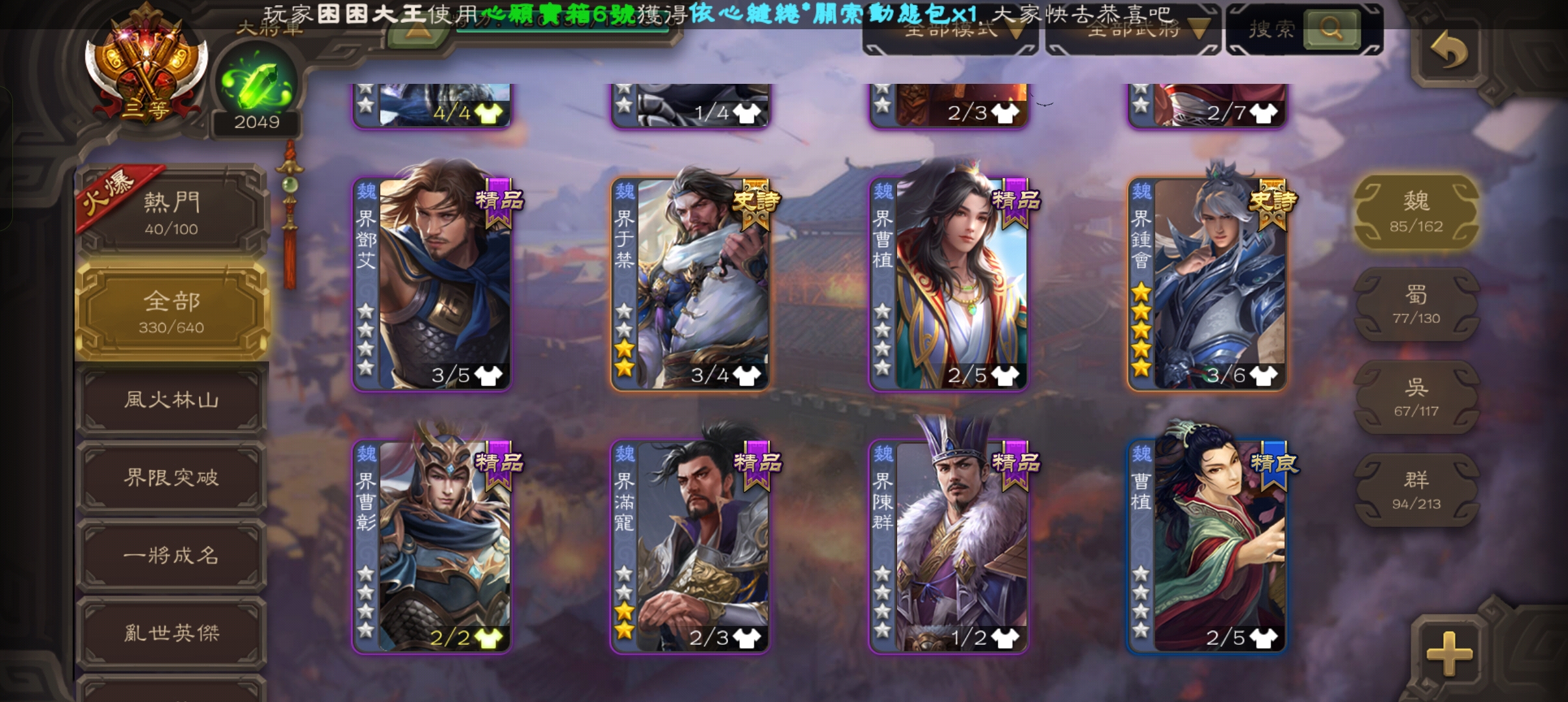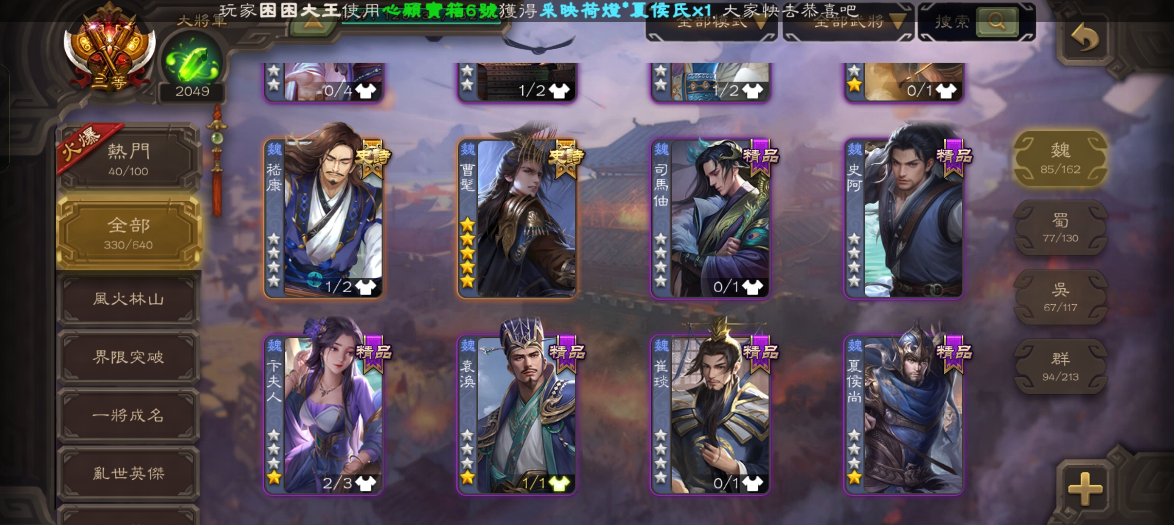 楊彪,曹髦,孫寒華,戲子,關索,界于禁,郝劭,神曹操,神司馬~~