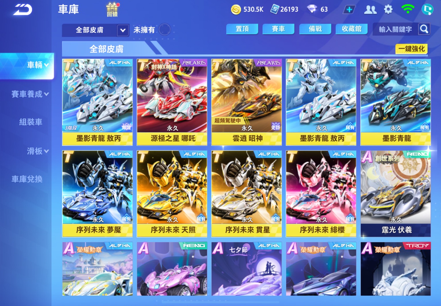 四機甲!雲霄昭神、青龍敖丙、源極娜吒、序列四皮膚,聯賽車、神寵龍神,幻生套魔法套