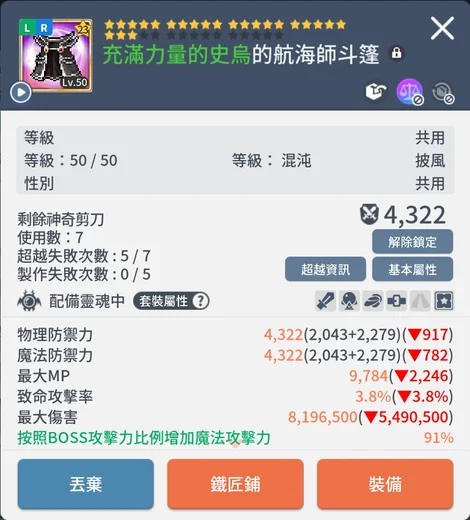 亞一|傑尼斯|23星|航海師斗篷|等級50|綠無視|綠潛HP|暴紋