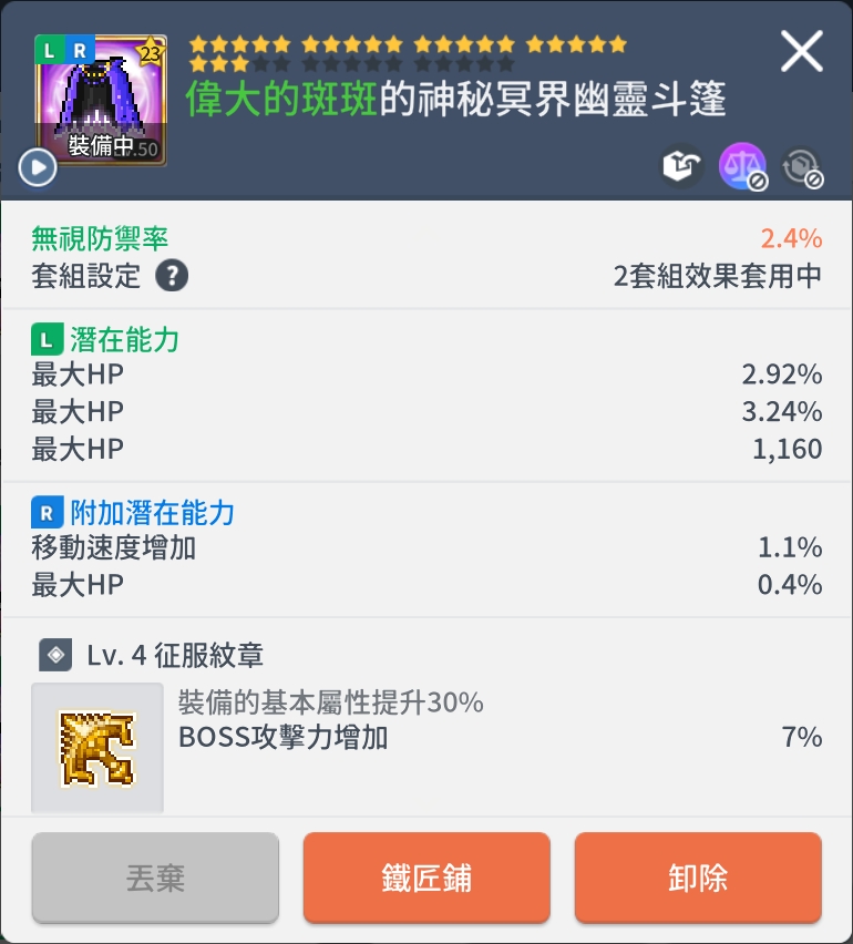 亞一|傑尼斯|23星|神秘冥界幽靈斗篷|等級50|綠無視|潛能HP|B紋|斑終傷