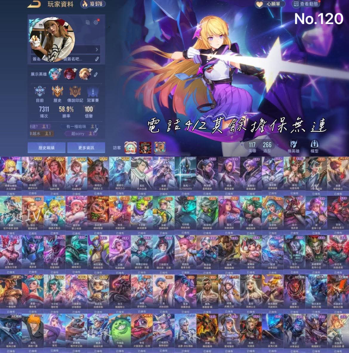 帳號 【Garena帳有綁定、先鋒傳說·天際、V8、117英、266造】 特爾次元 鏡花水月 朽木白哉 月落星辰 奧特曼 星際 新年 鬼武者 聯動 連動