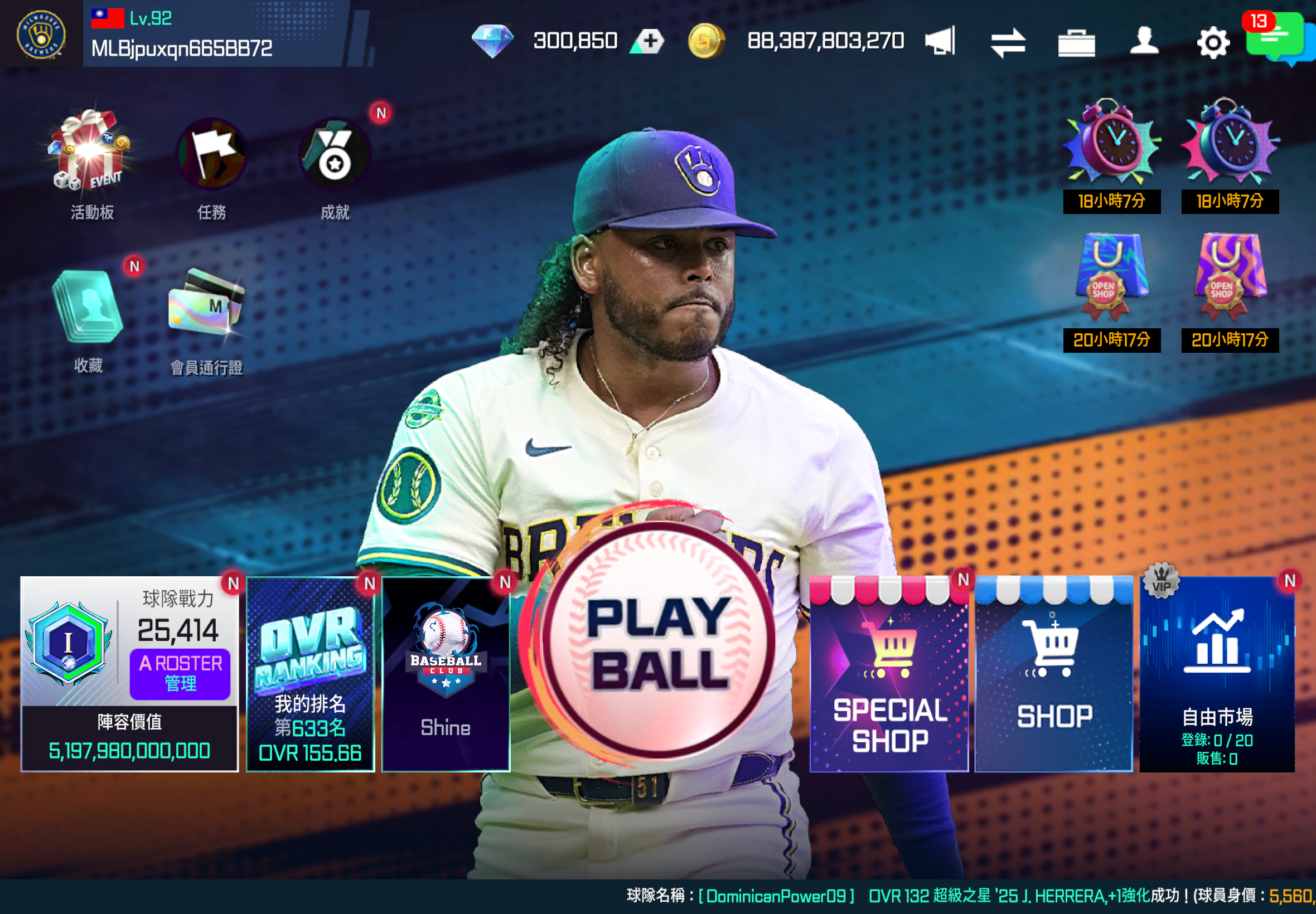 【92等】 純釀酒人全怪物 總評25414 30萬鑽石➕800億金幣