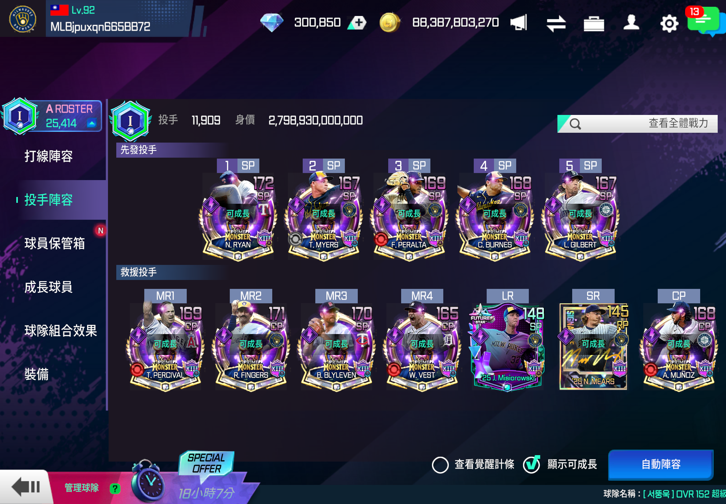 【143等】太空人純隊 總評26072 鑽石12萬+金幣1500億