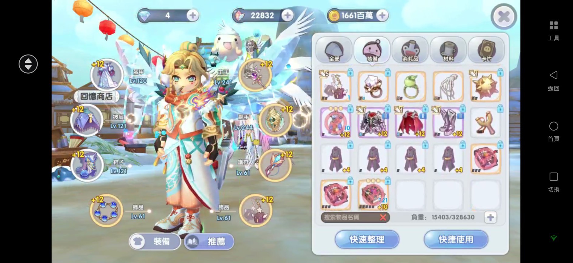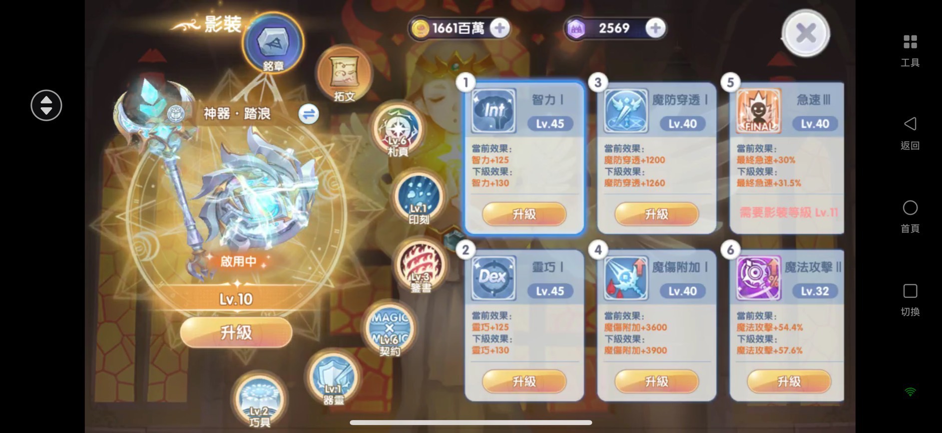 改良:彩暉改1/魔力胸針改2/達納改2/鋼鐵魔杖改2/魔力盾牌改2