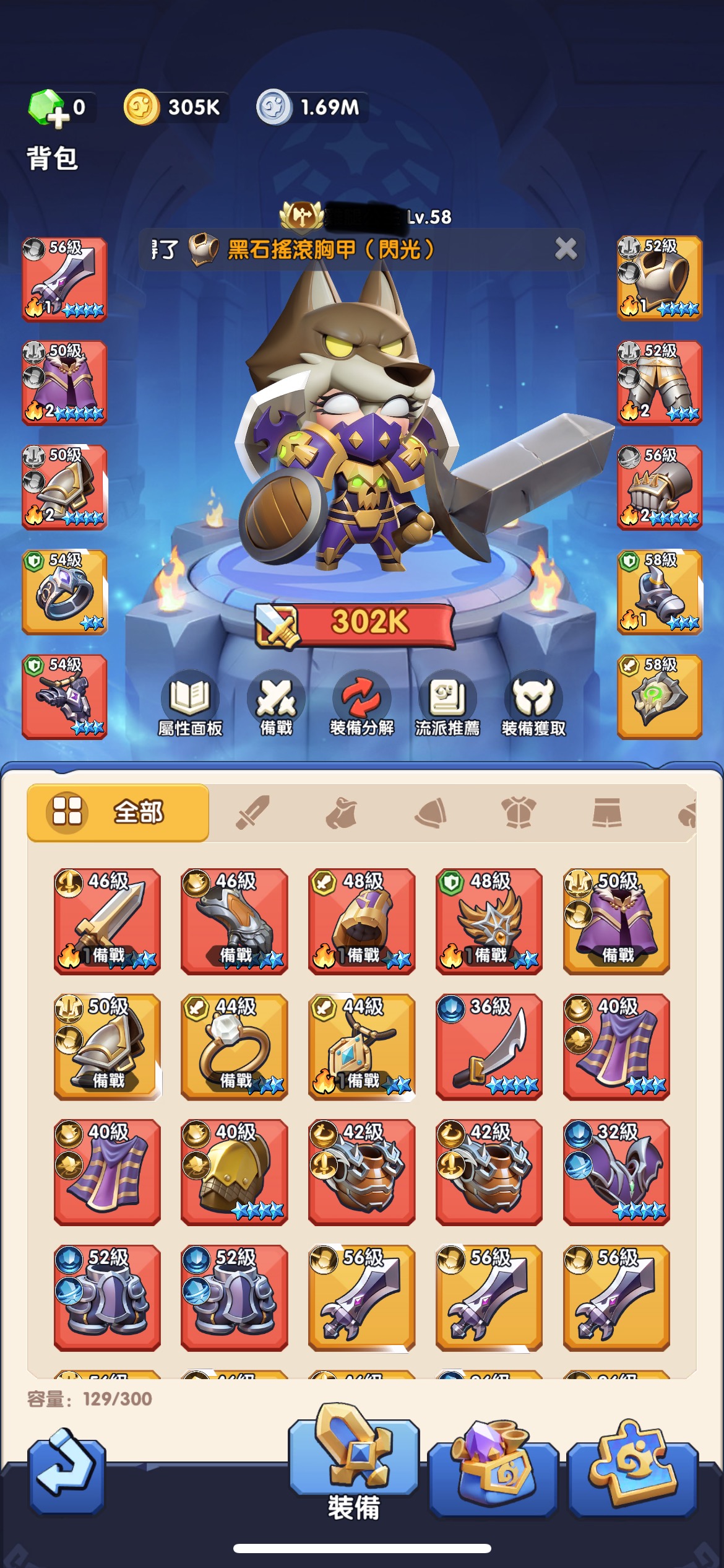 【58等】 S1 戰士 戰力302K 3金寵1星魂爪+1星山崩+隕星 1金寵自選