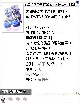 道具 +12天使波利戰靴 (鬥技場雅樂西)