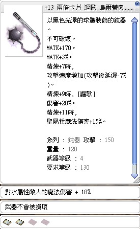 道具 +26烏爾套 +13烏爾蒂奧聖魔法斗篷(延7%)+13烏爾錘