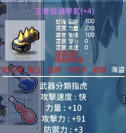 • 武器:10力91AD / 王者毀滅拳套