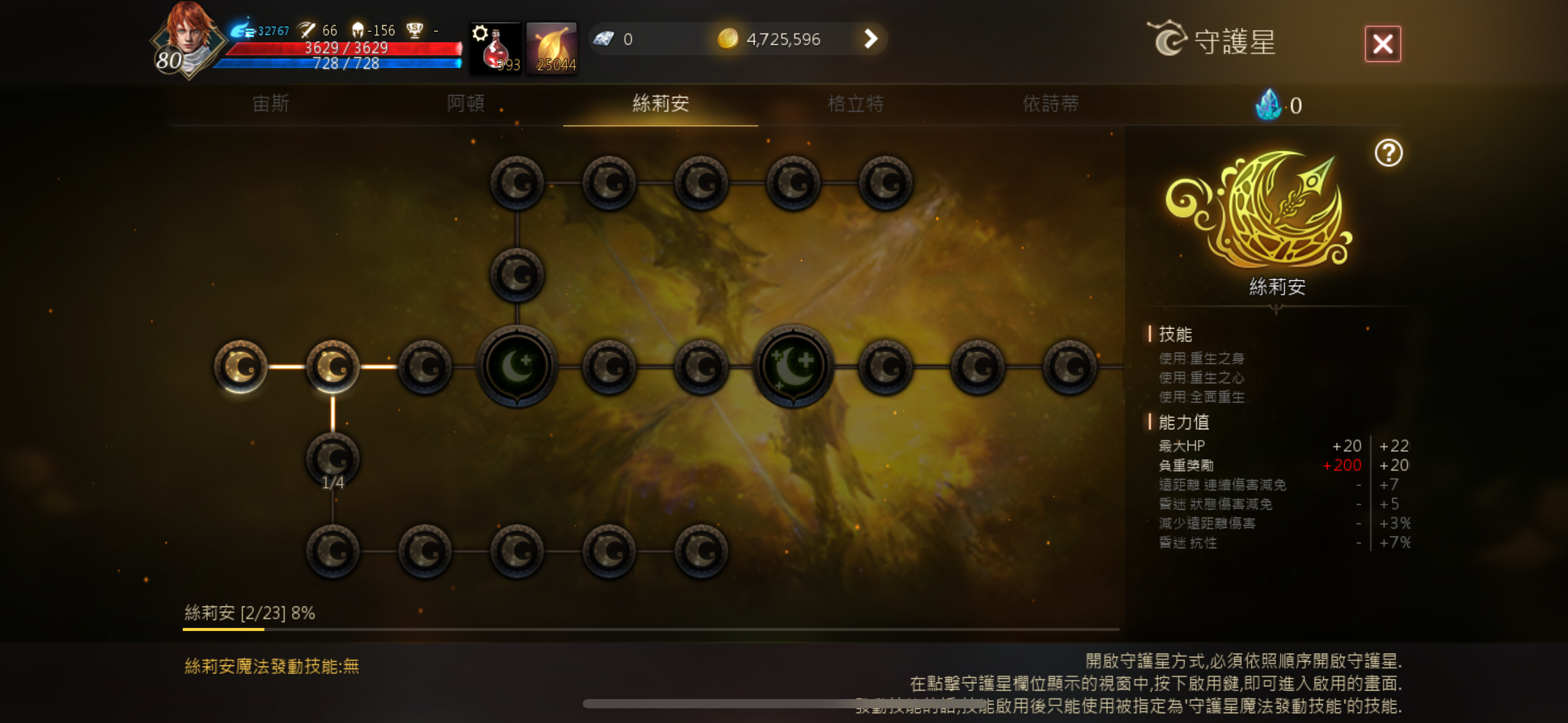 灼熱靈氣(2階段)、精準目標(大師)、勇猛意志、勇猛意志(大師)