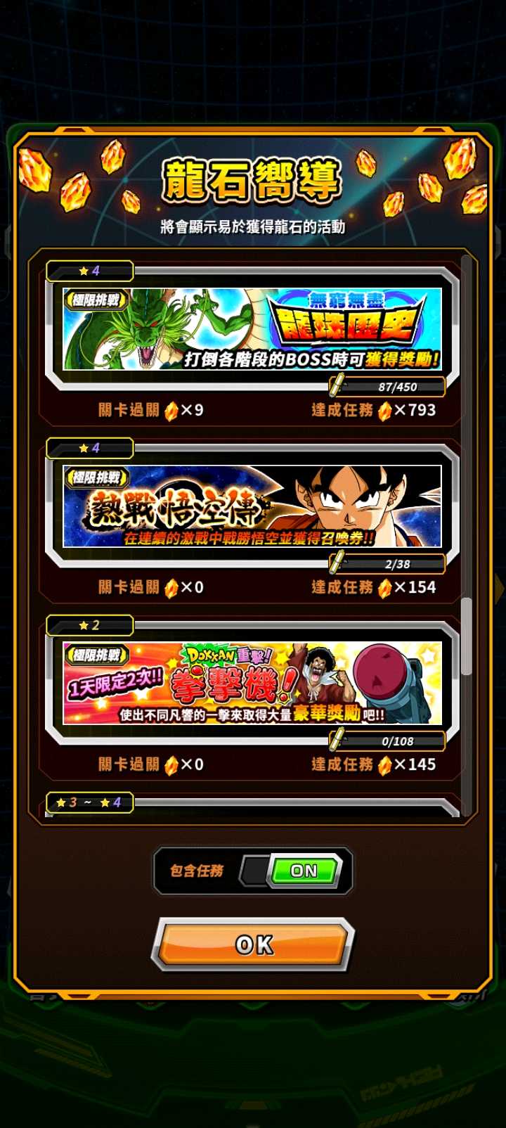 50-60個極限關卡沒打+高難沒打/解任務能挖3000-5000龍石