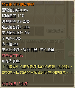 B.牛肉沙拉+牛肉漢堡+黃金棒棒腿(一套3種補品,共14%表攻、4%造傷)⭢推薦給缺很多滿表的你