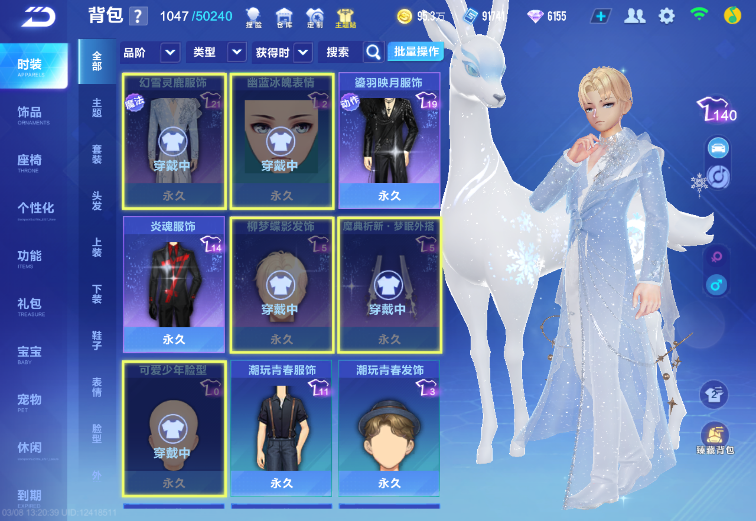 【87等】 墨影青龍敖丙 幻雪靈鹿套裝 溯光 榮耀車神段位