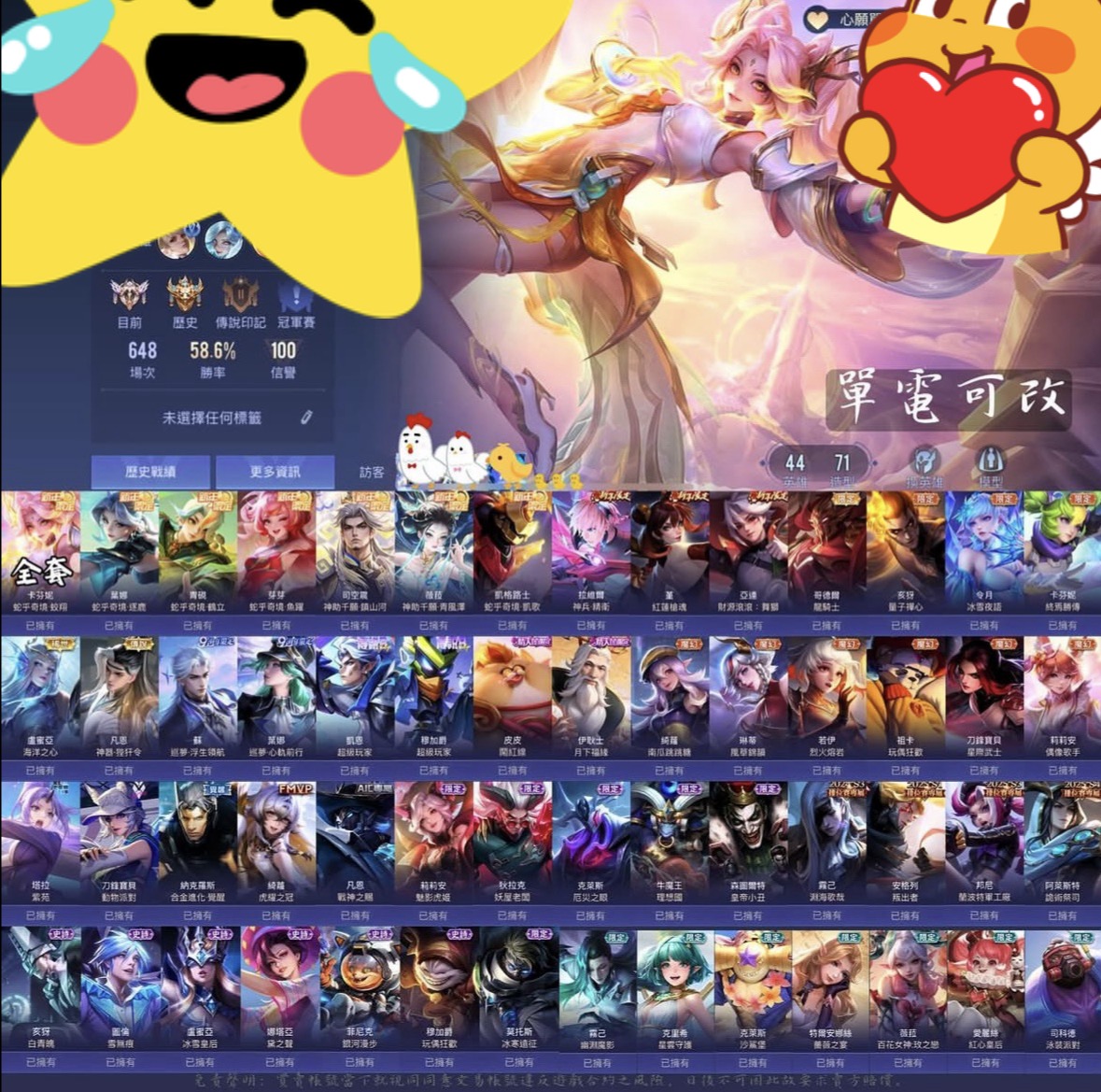 【Garena帳有綁定、星耀、V7、52英、72造】 單電等改 卡芬新年全套 蛇年差比洛爾 拉威爾新年 多直購盛典