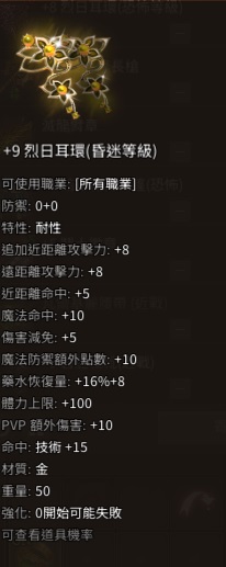 +9烈日耳環 (昏迷等級)