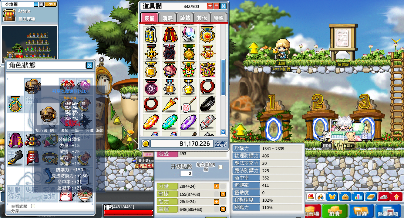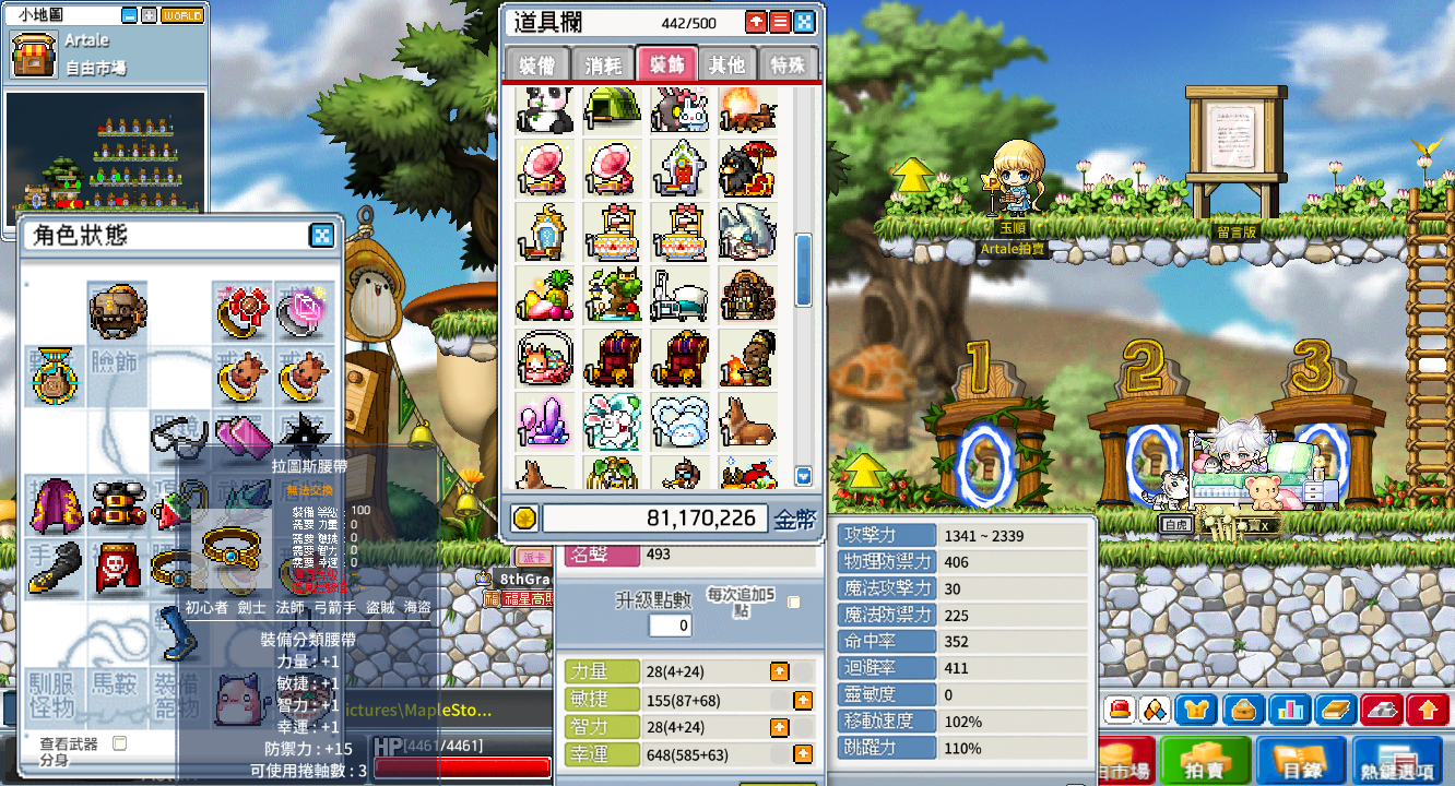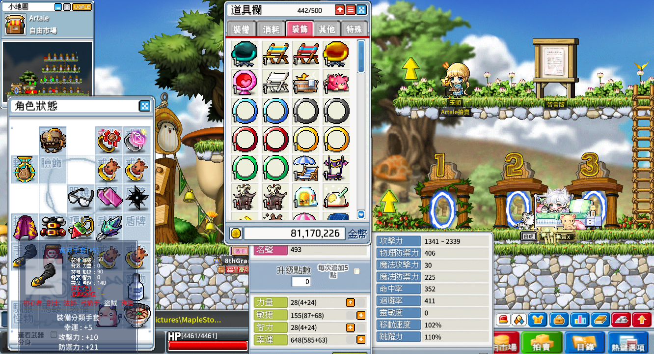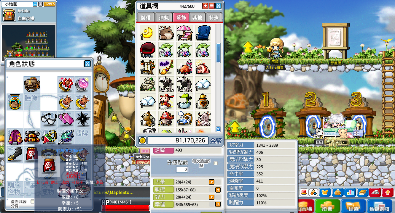 背包資源:500格、楓幣3400w、雪花106個、