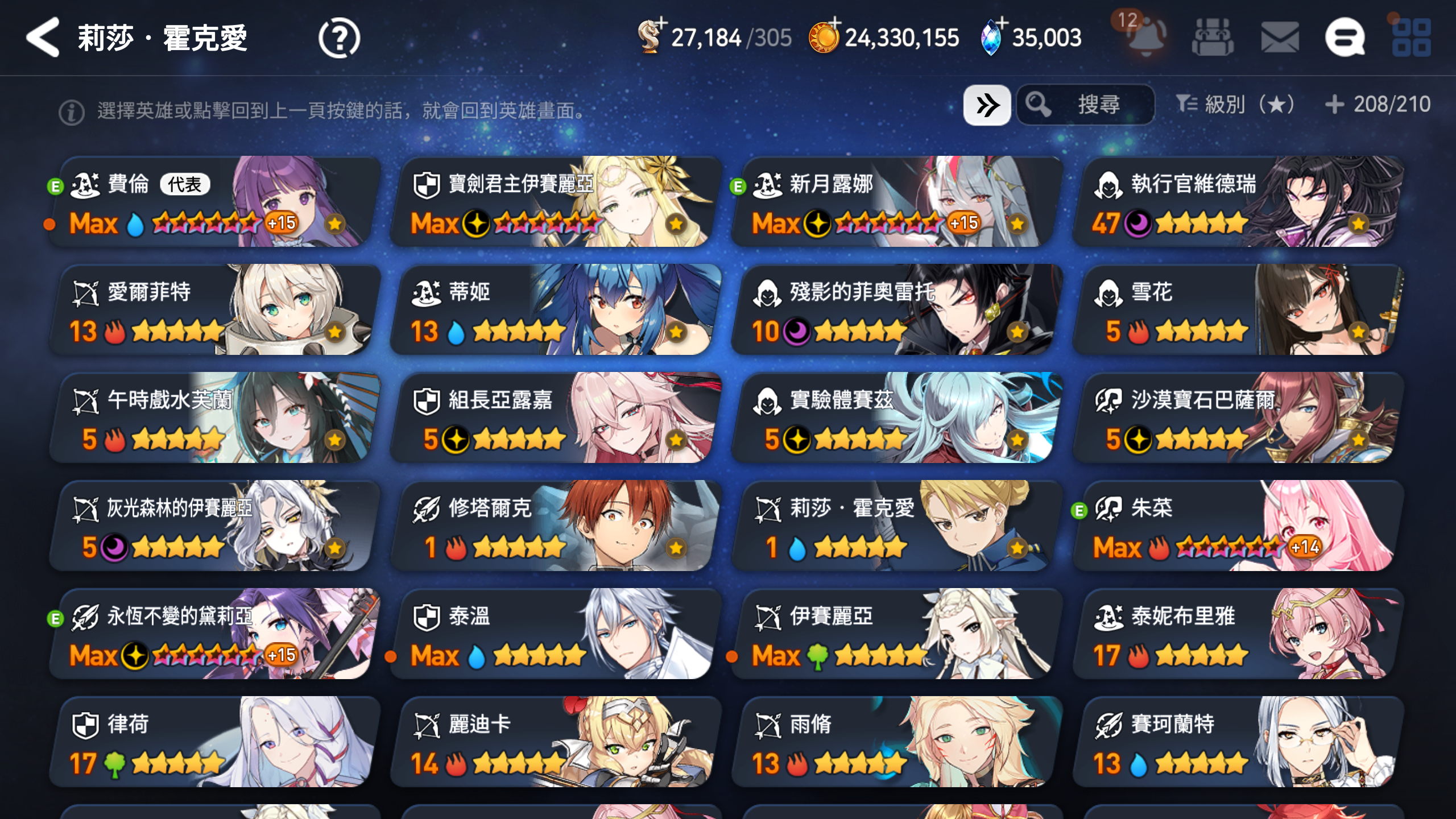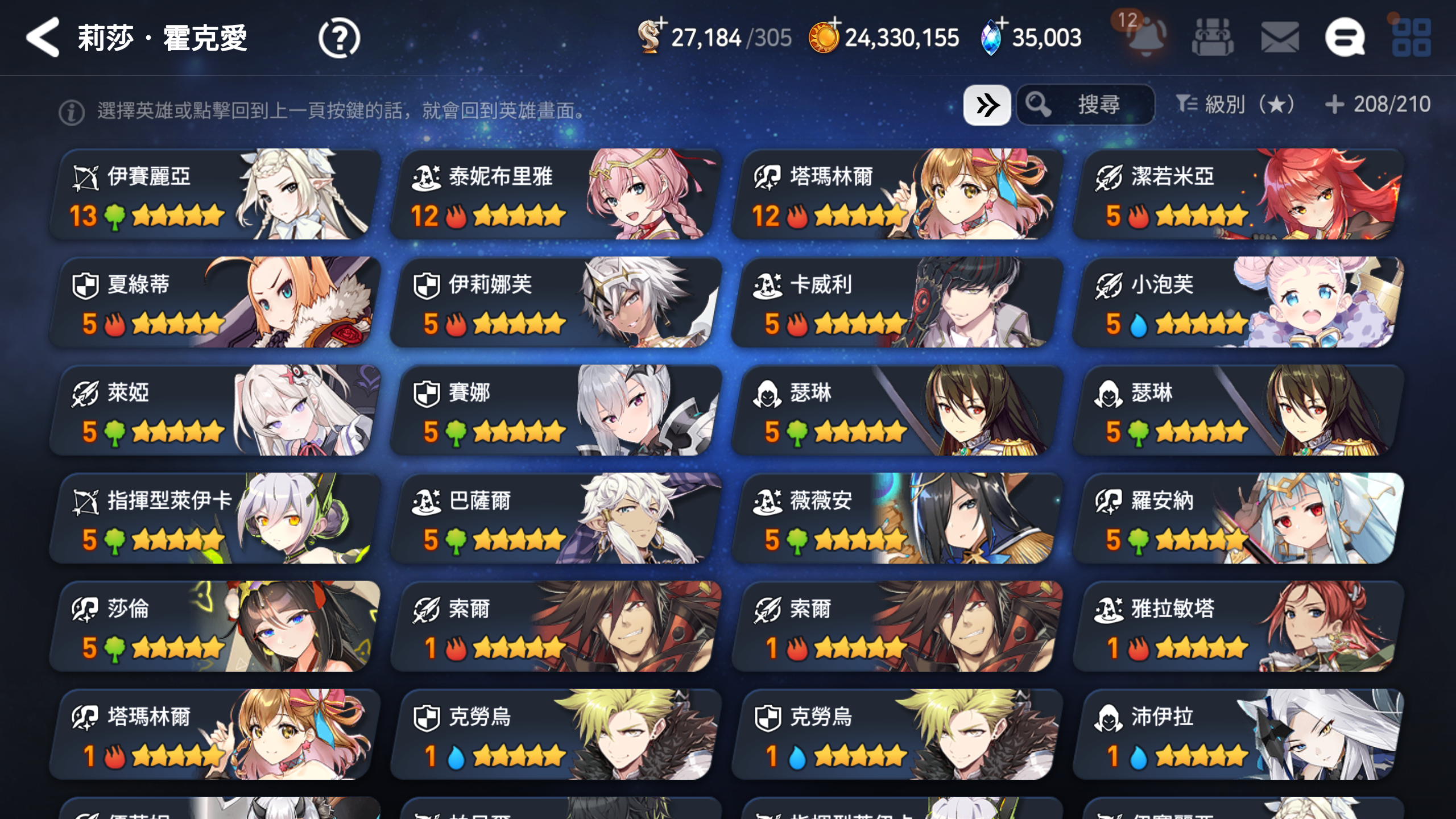 ▶適合新手、中手、小號,有完美開局多隻TOP光暗五星,不是資源玩爛的帳號,培養都往正確方向,多書籤跟天空石讓接下來抽合作角色都不是問題