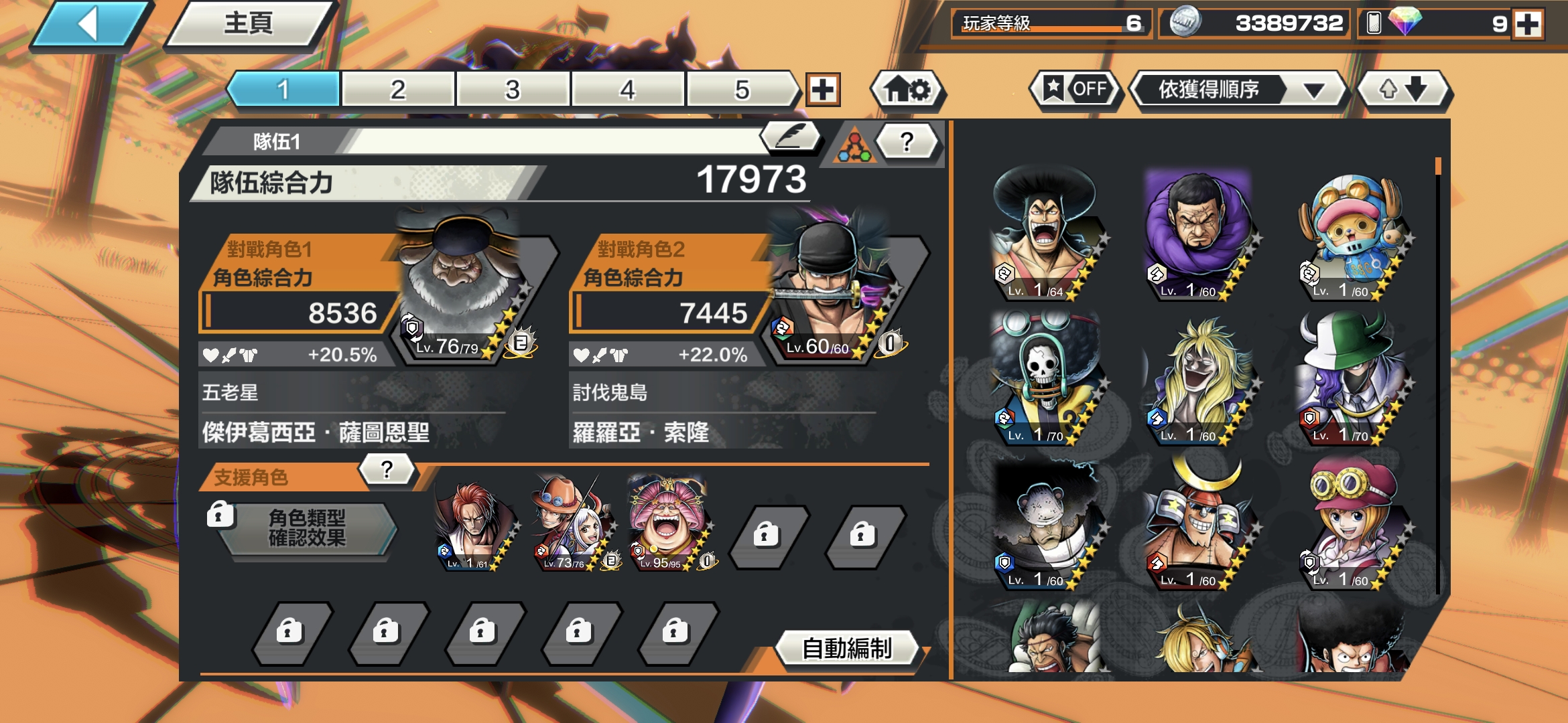 【6等】 6超傳非常多的角色,五老星,鬼島索隆,艾斯,魯夫尼卡,bigmom,紅髮
