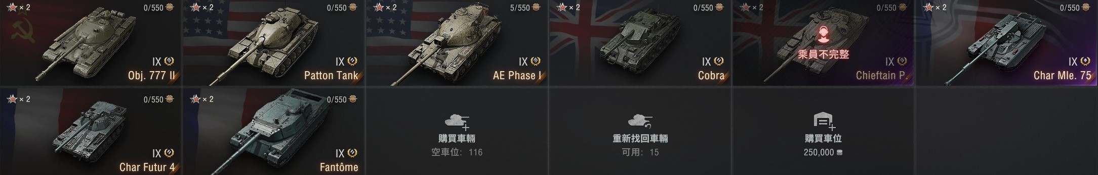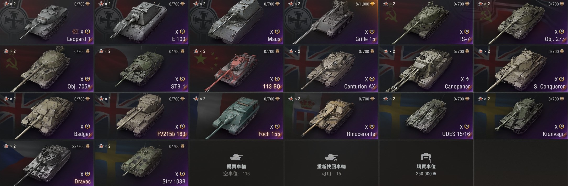 此帳號主重坦>TD>輕中坦 重坦車居多 階級主要8和10階車居多