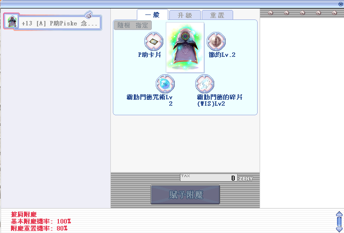 道具 +13[A]念動風神斗篷-LT首領7% (咒2/WIS2/節約2) (P助卡片)