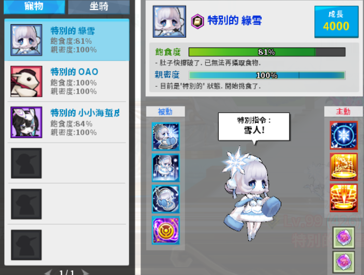 /本尊寵物:雪花冰 4000成長滿、有坐騎:暗黑獅鷲(已有附圖)