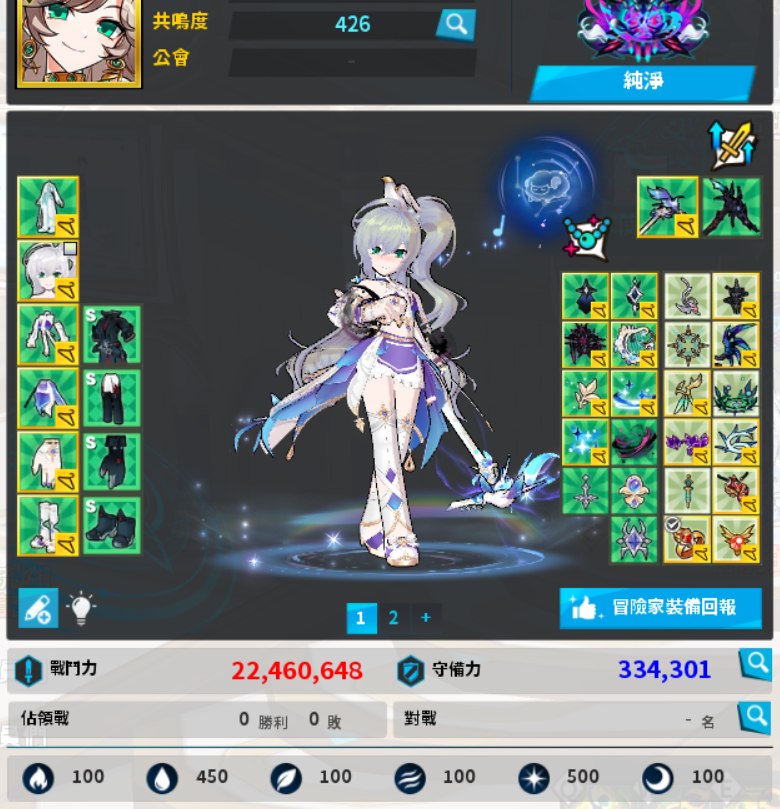 AV愛芙瑞絲:搭配純淨稱號 +泰納整套戰力約2200萬 /搭綠百億整套 1900萬