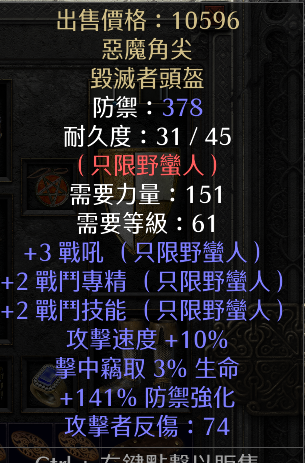 s13 惡魔角尖 毀滅者頭盔 322 3%野蠻人