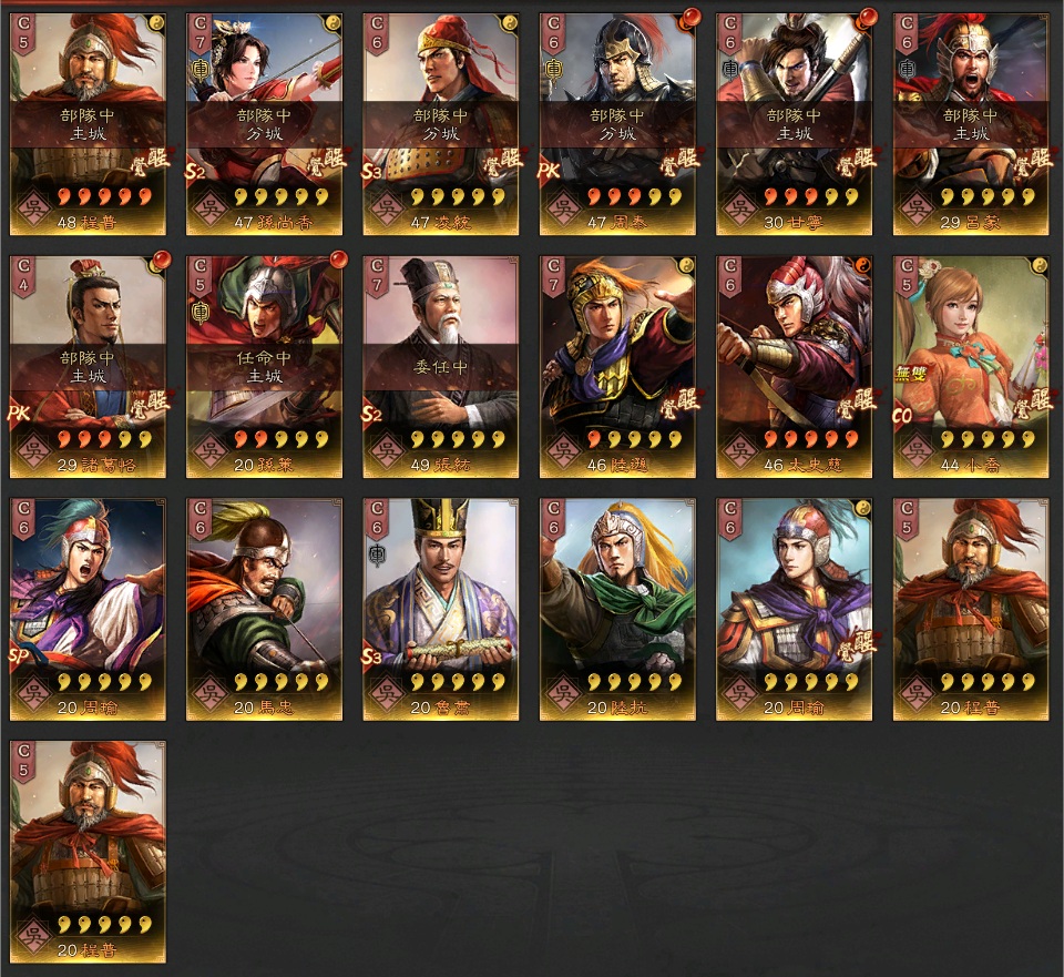 裝備:天公、號令、雄烈、雄才、靈動X2、援助X2、踩踏X4、暴躁X1、好學X1