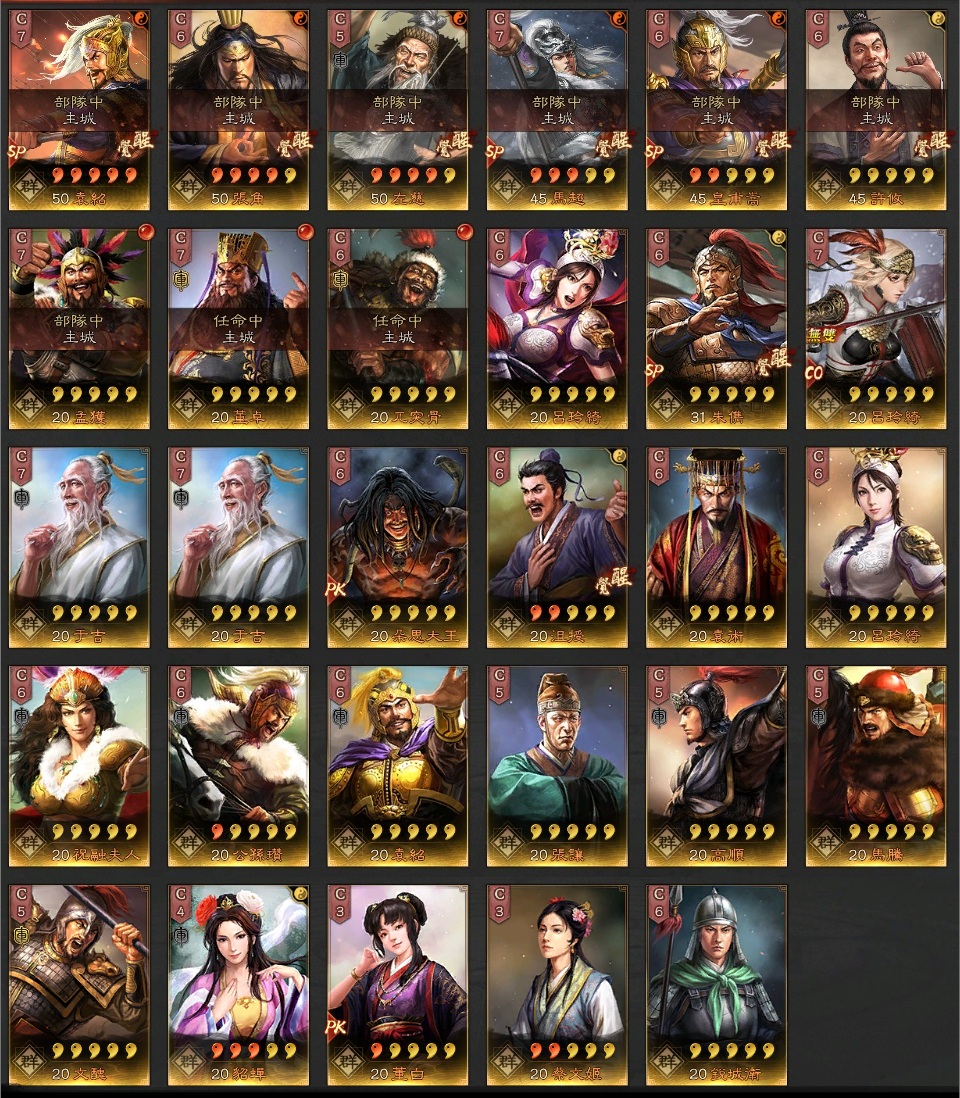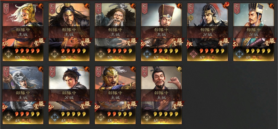 動態:SP袁紹、張角、左慈、SP荀彧、SP郭嘉、賈栩、周泰、SP馬超、SP皇甫、許攸