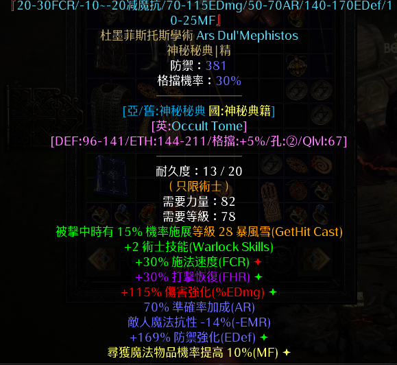道具 S13術士天梯3頂30高施頂115ed增傷頂70命中墨菲書杜墨學術迴響打擊