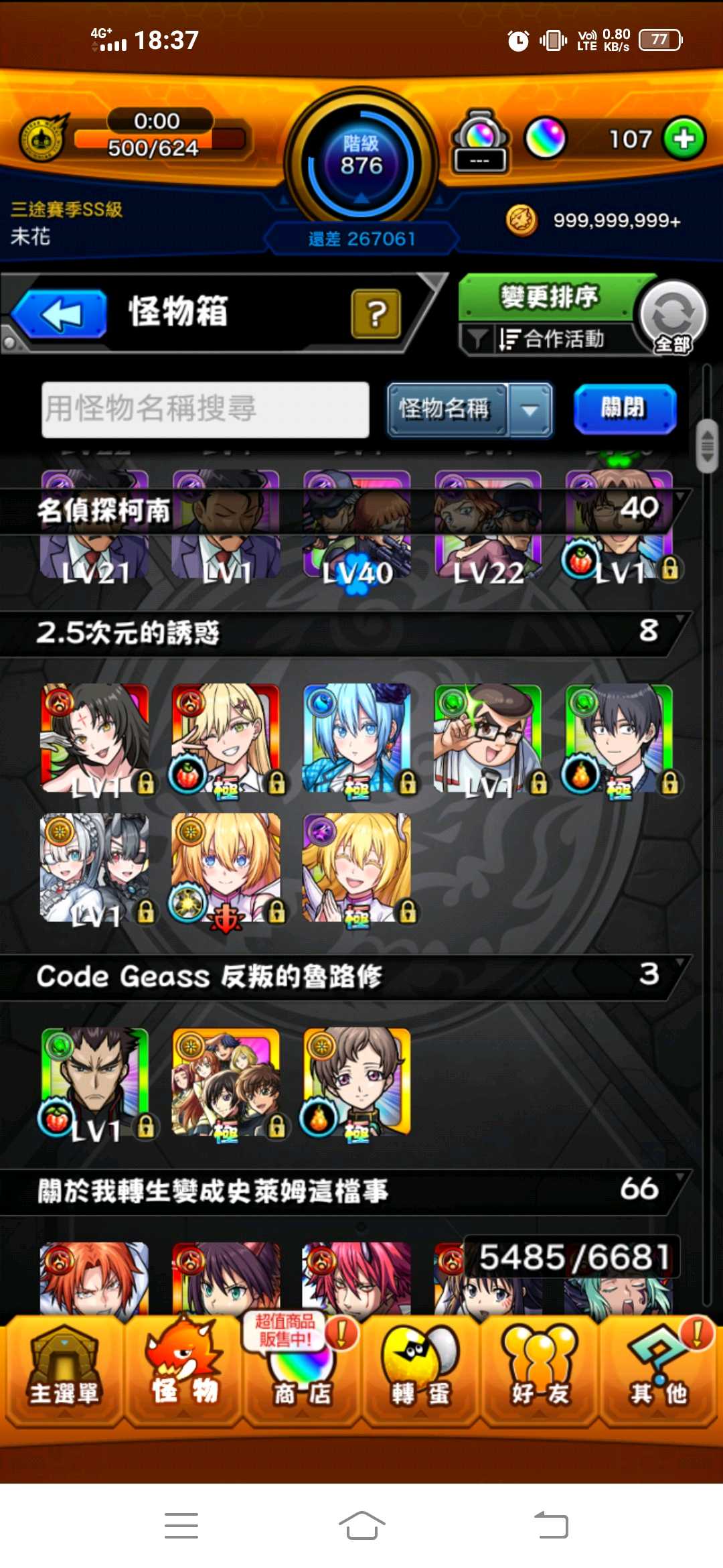 【877等】 紋章力23000以上 多合作多角色(合作角+限定總共600多隻)
