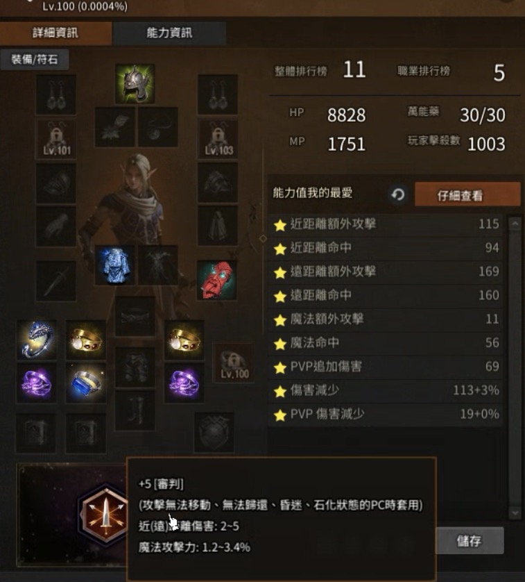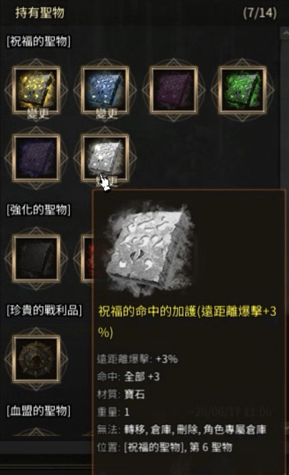 5.祝福命中的加護(遠據爆擊+3% 全部命中+3)(要噴不少台幣製作)