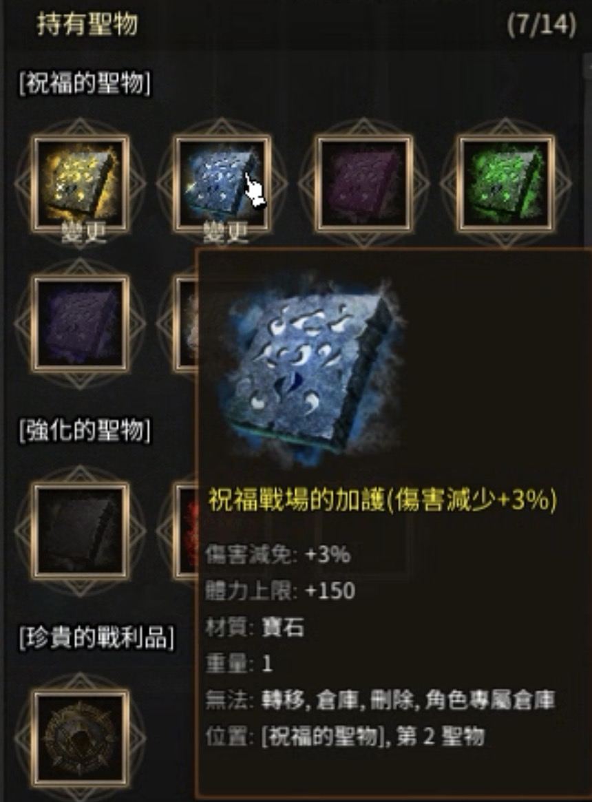 3.祝福戰場的加護(傷害減免+3% 體力+150)(噴不少台幣製作)