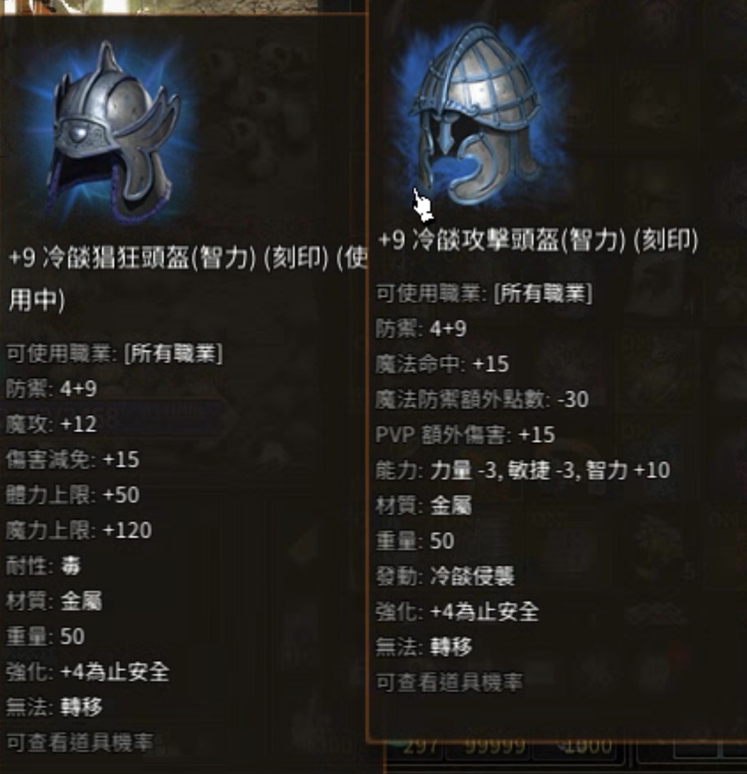 1.+9冷燄攻擊頭盔(智力)(刻印)(價值$2500)(送你)