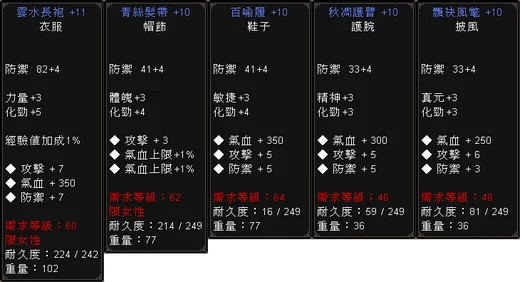 二戰裝備:60+11棍1063,可加購48~64+10防具一套和其他60+11武