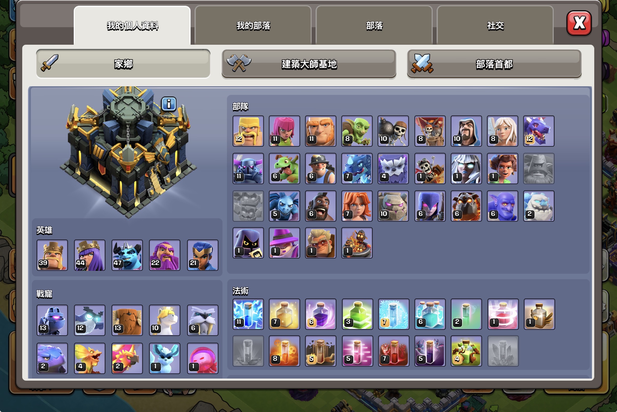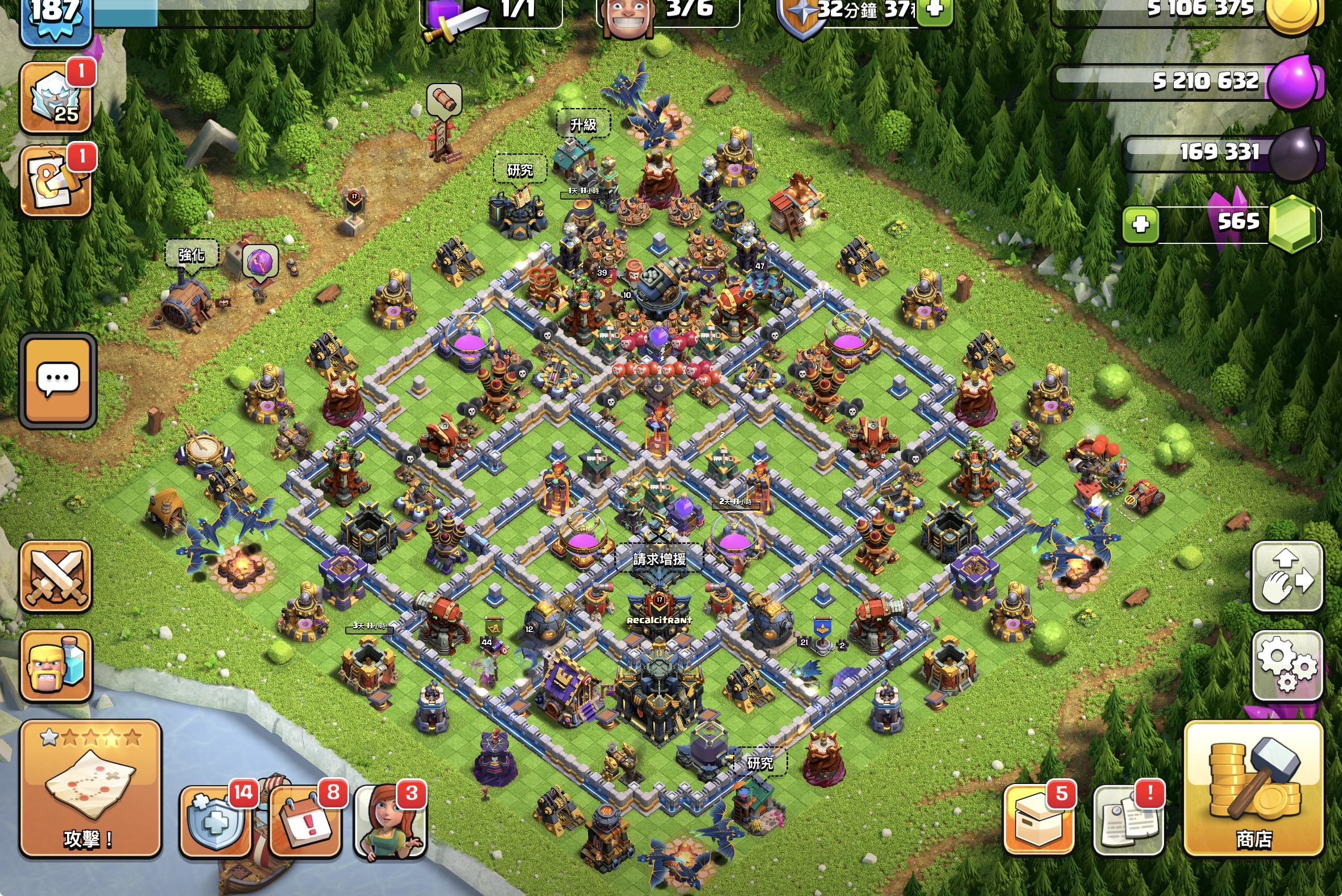 【187等】 17本高防禦 科技等級高 夜世界也有經營 滿6建築工人 便宜賣