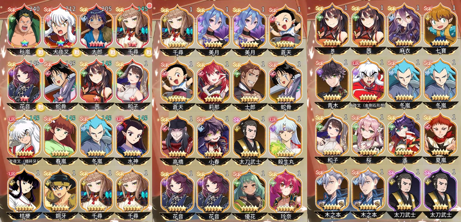 【90等】 S9區,歐洲無課帳,10星秋嵐、10星犬夜叉,大量SSR+UR,圖4/8更新