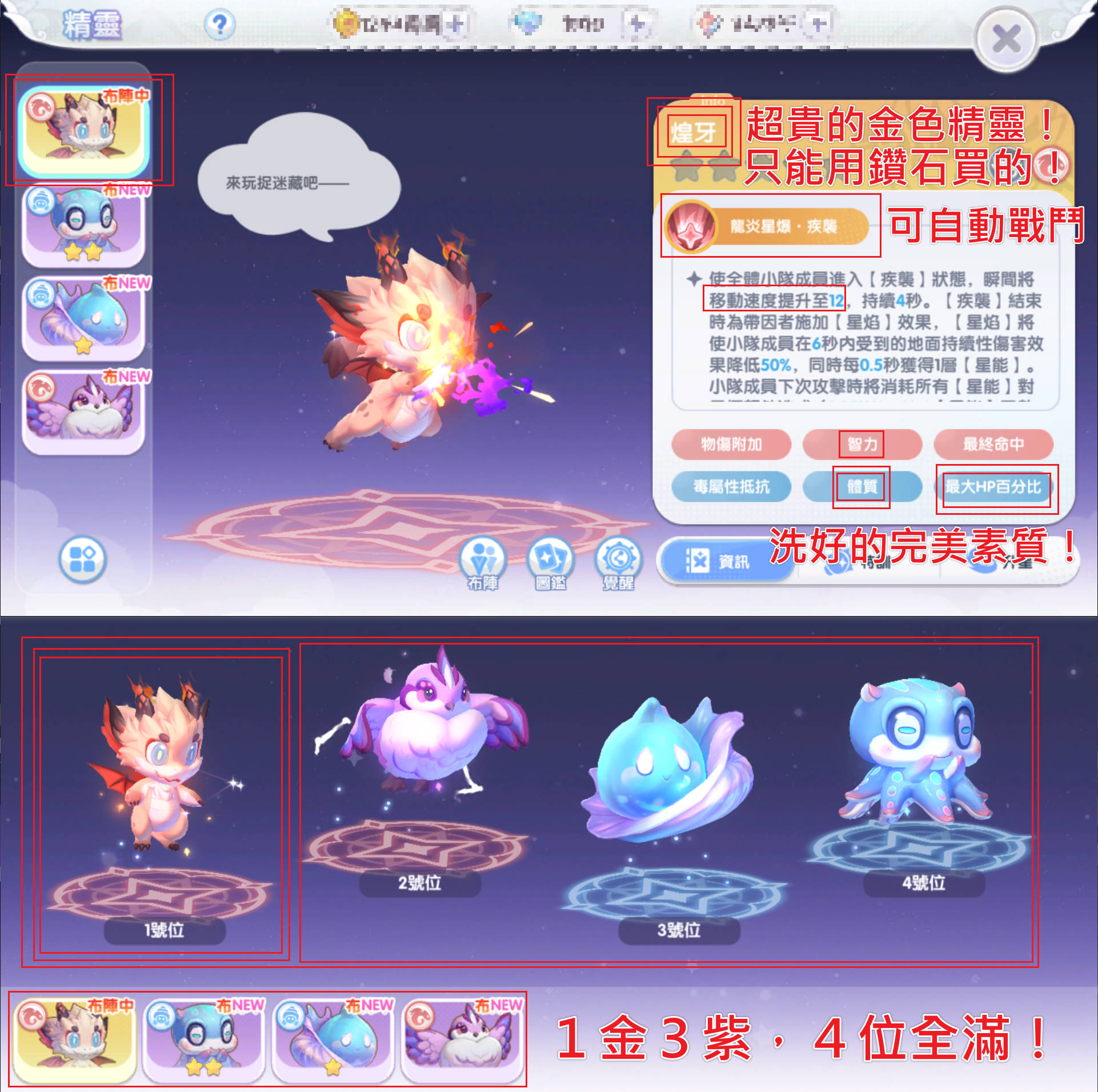 💌新賽季啟動「精靈布陣位重置」,目前『體質15500』、『血量3.7億』!