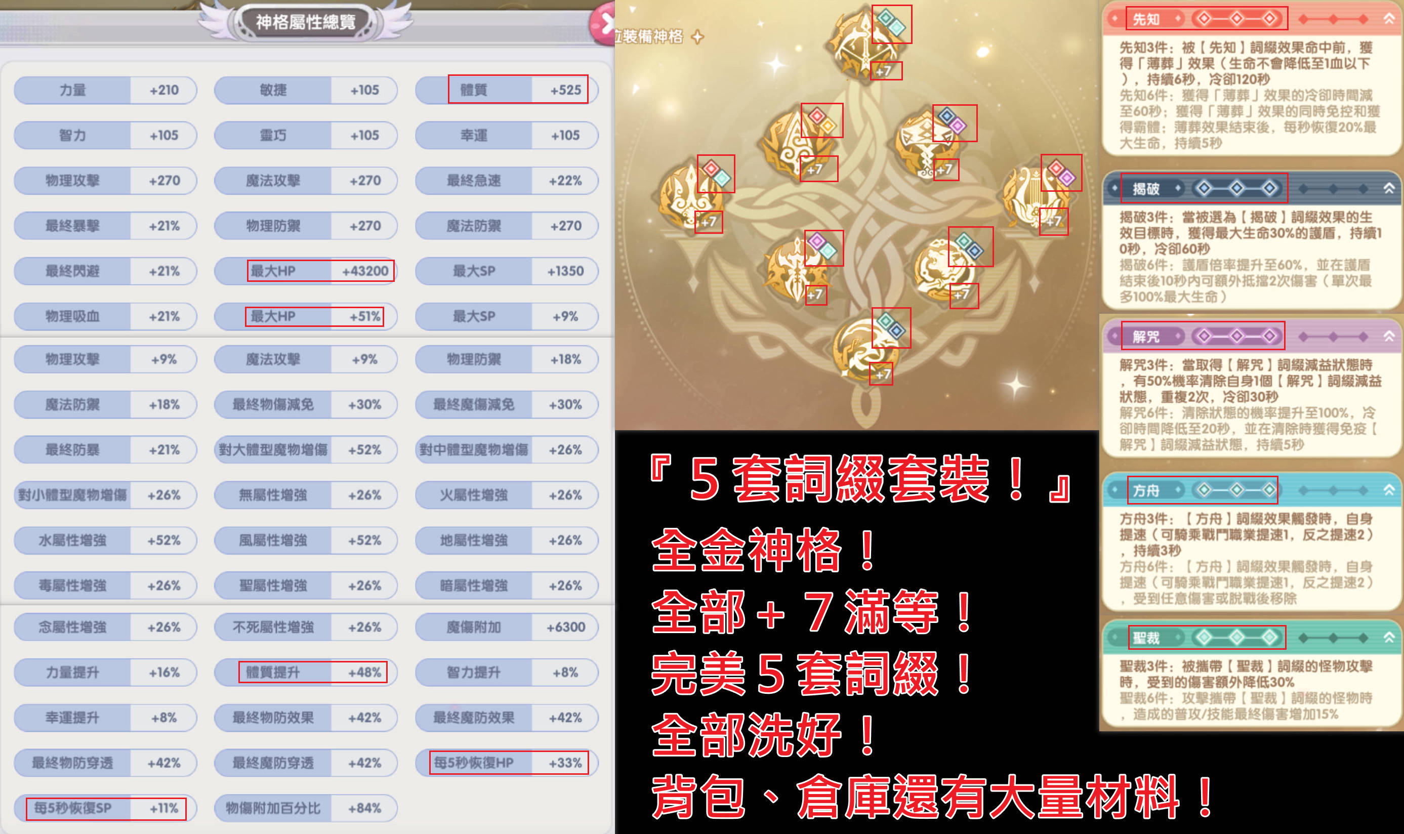 🍓強化:飾品上75。目前已經強化10覺醒,加成強大!還能提升大量體質!