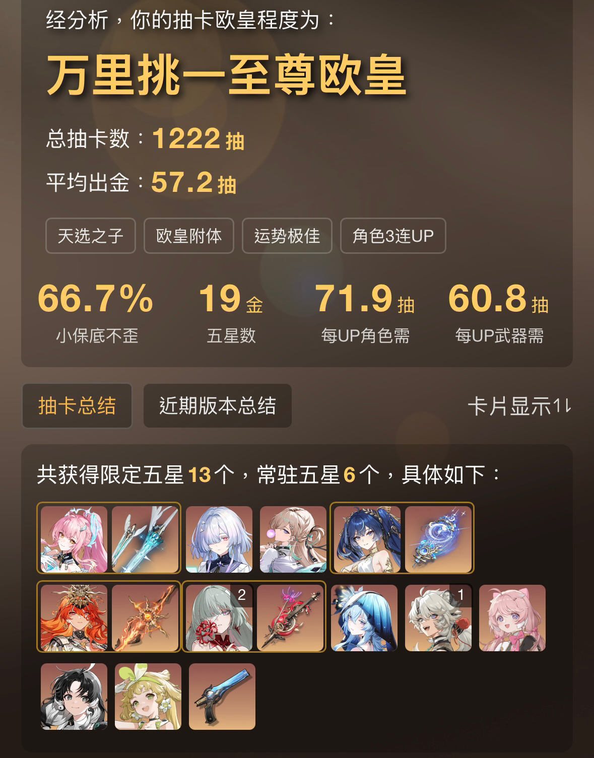 每UP角色只需72抽,大幅低於期望值