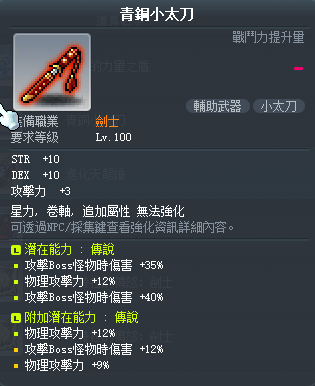 道具 【青銅小太刀】 主潛能75%B12%物附加21%物12%B劍豪副武器15999不實收