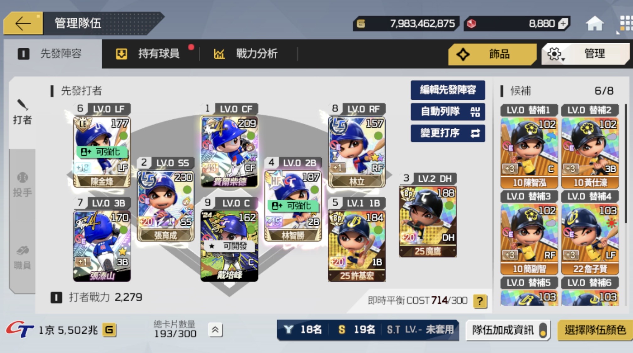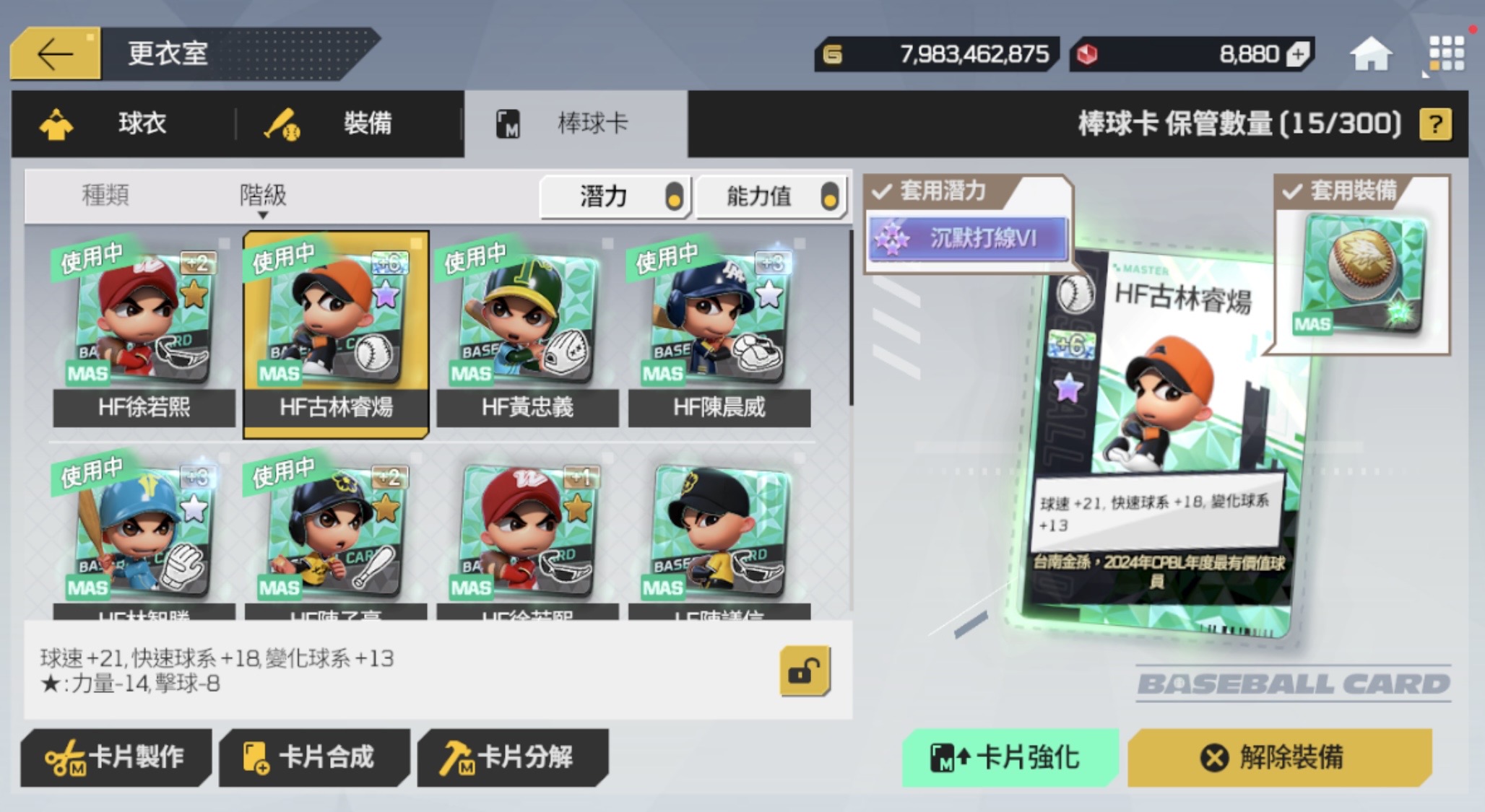 【16等】 戰力1京5502兆 主打+6古林棒球卡 戰力持續上升中