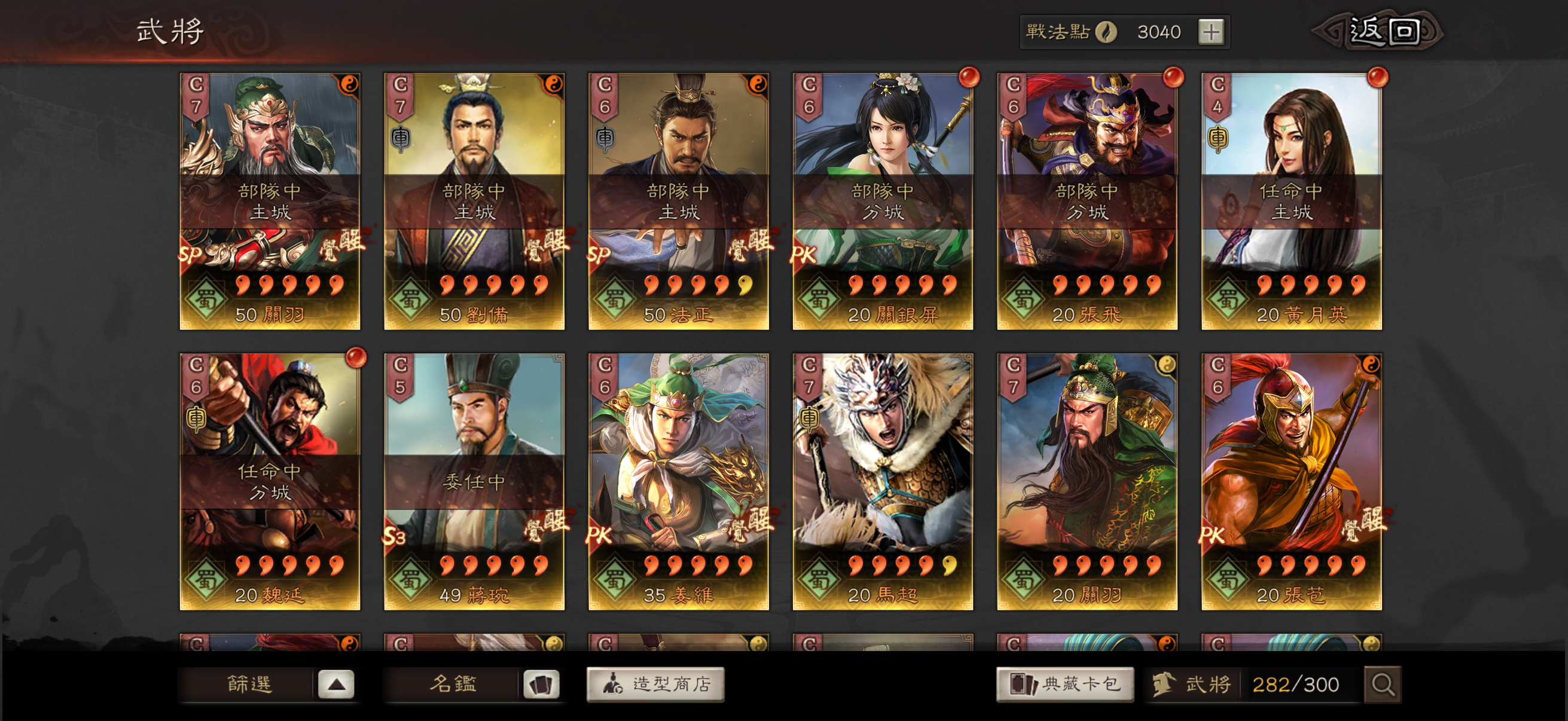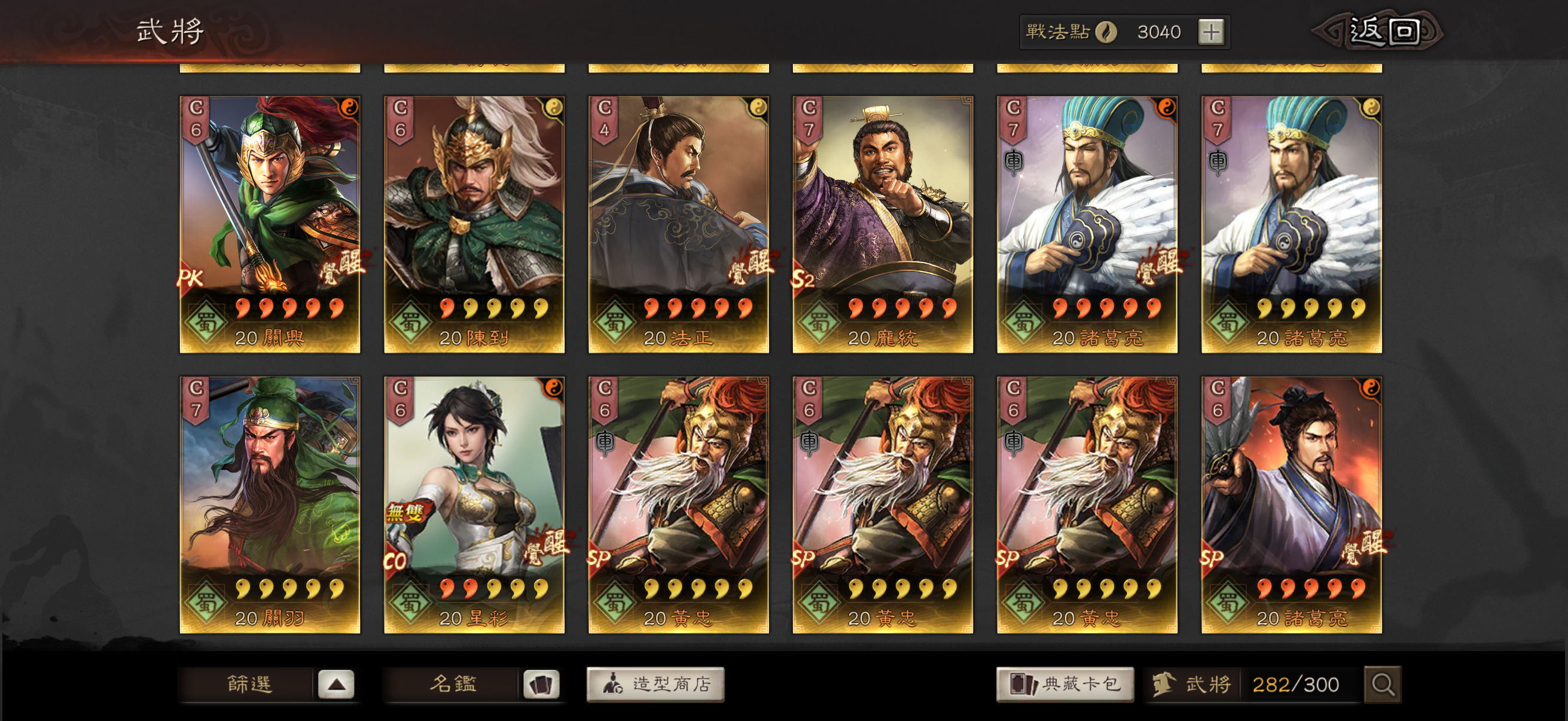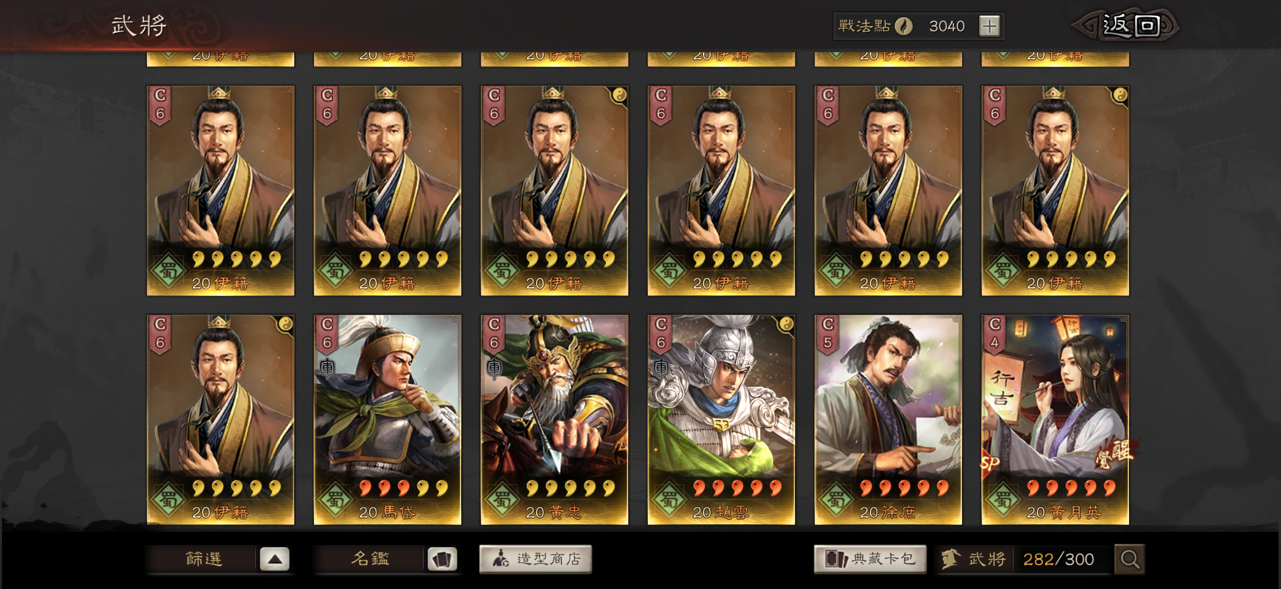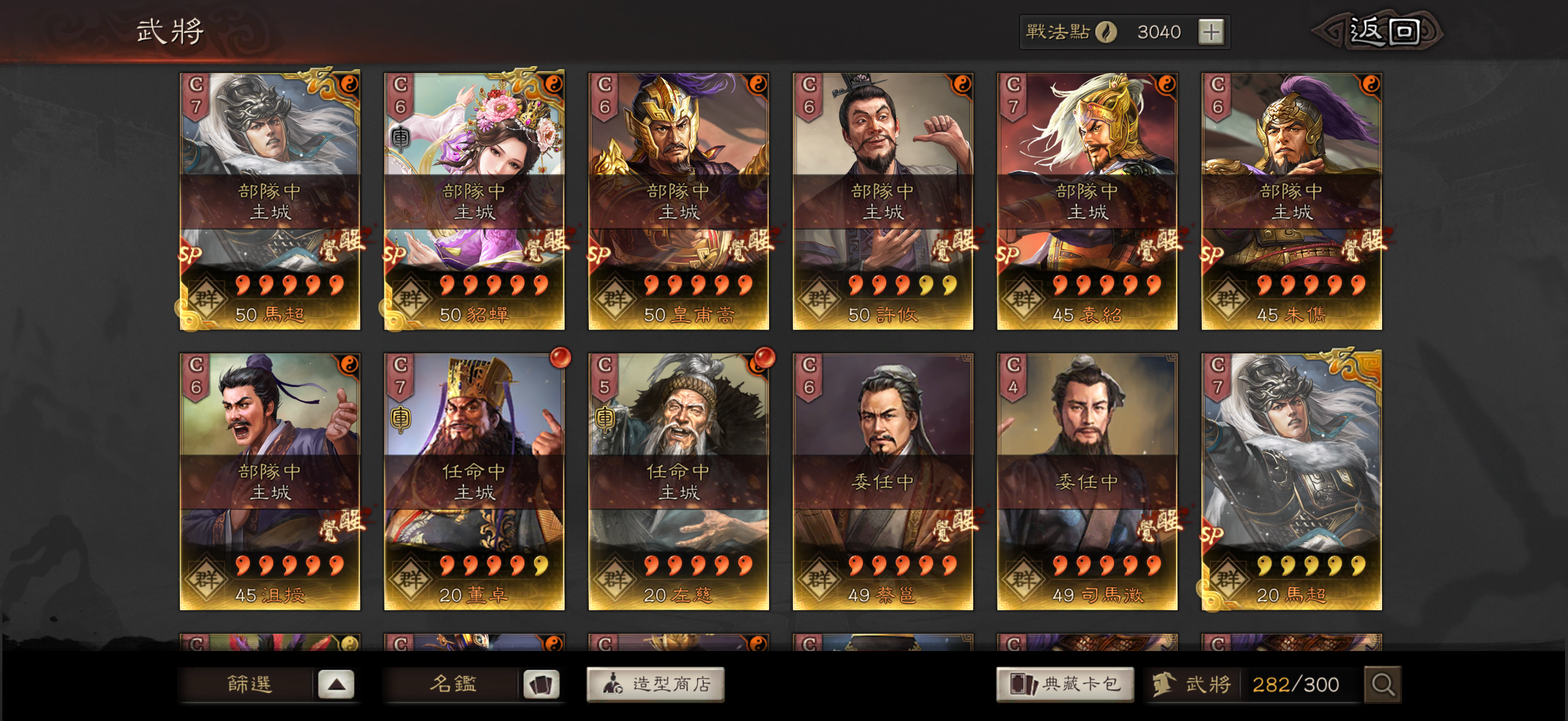 神威 熊烈 奸雄 沉勢 號令 2武聖 弓神 昭烈 天公 龍驤 虎恃 5靈動 3援助 奇算 2雍雅 3踩踏 2出奇 扶危 2暴躁 2長健 剛體 回元 機謀 (還有很多沒列出來的 請自行查看